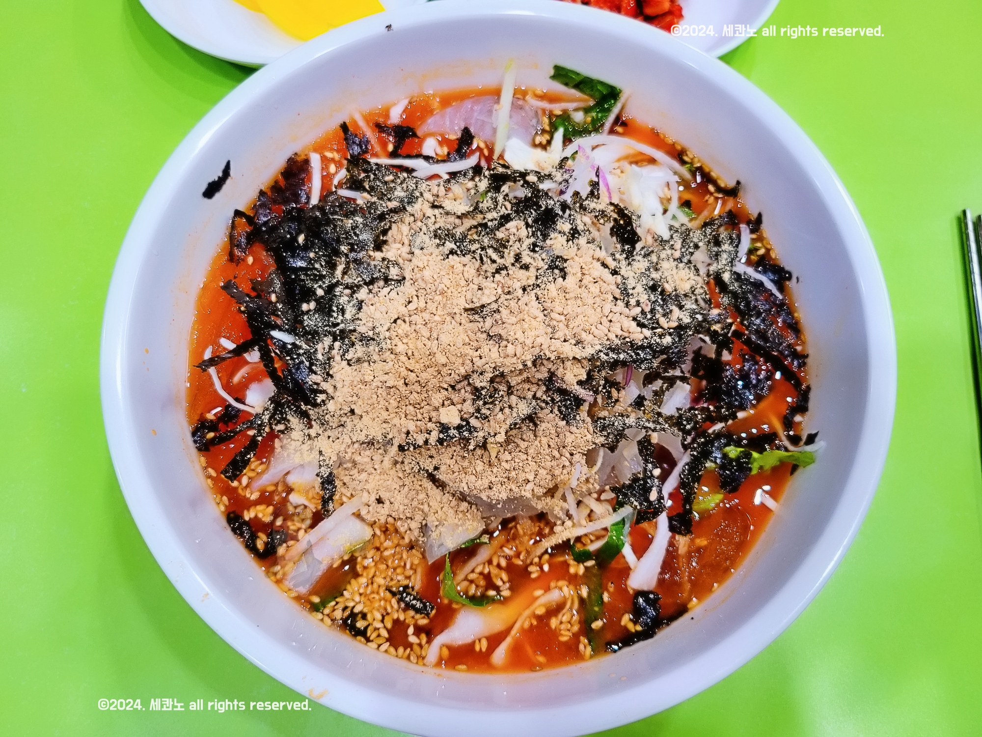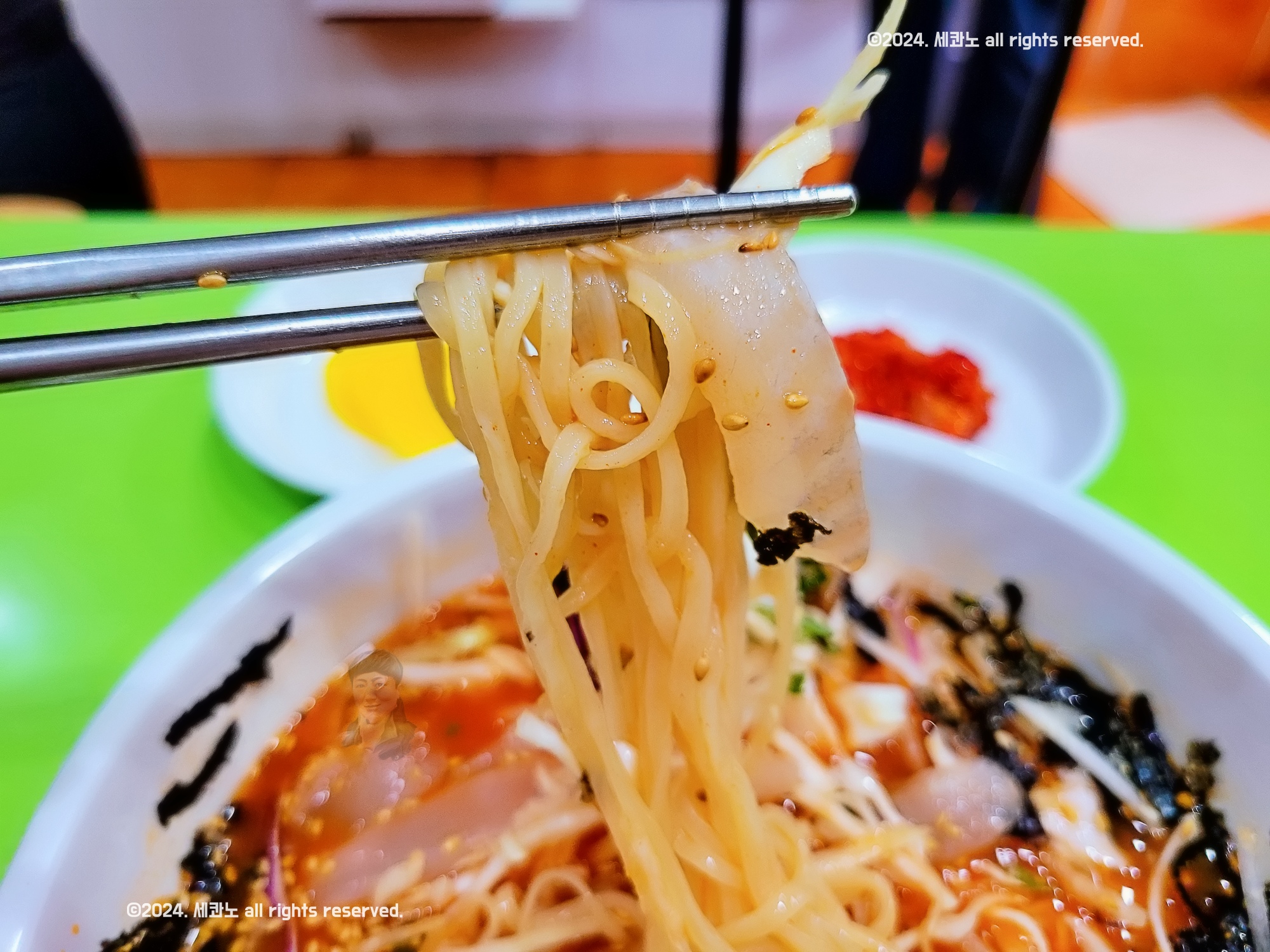직접 뽑은 생면으로 선보이는 달인의 회국수.