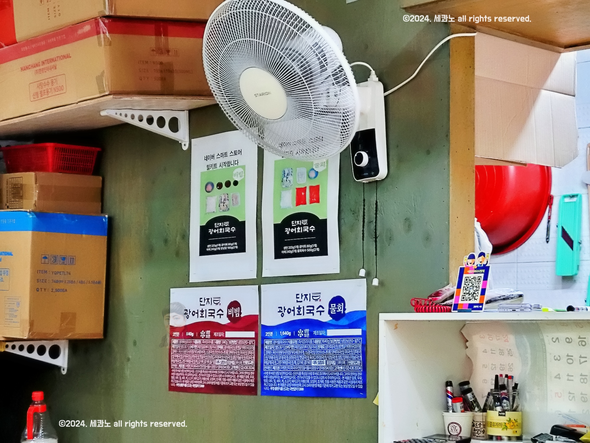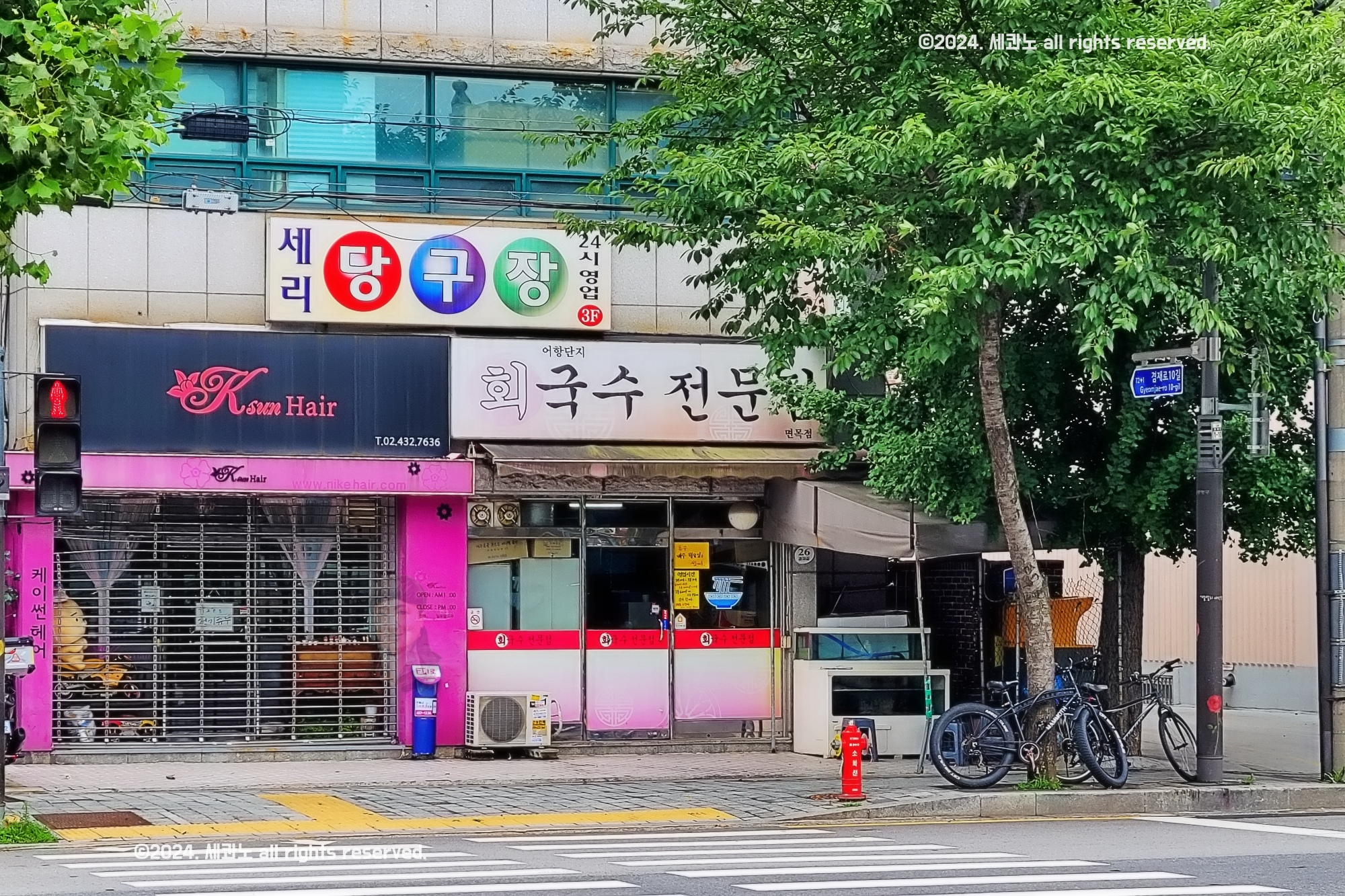 간판에 크게 '회국수 전문점'이 써져 있다.