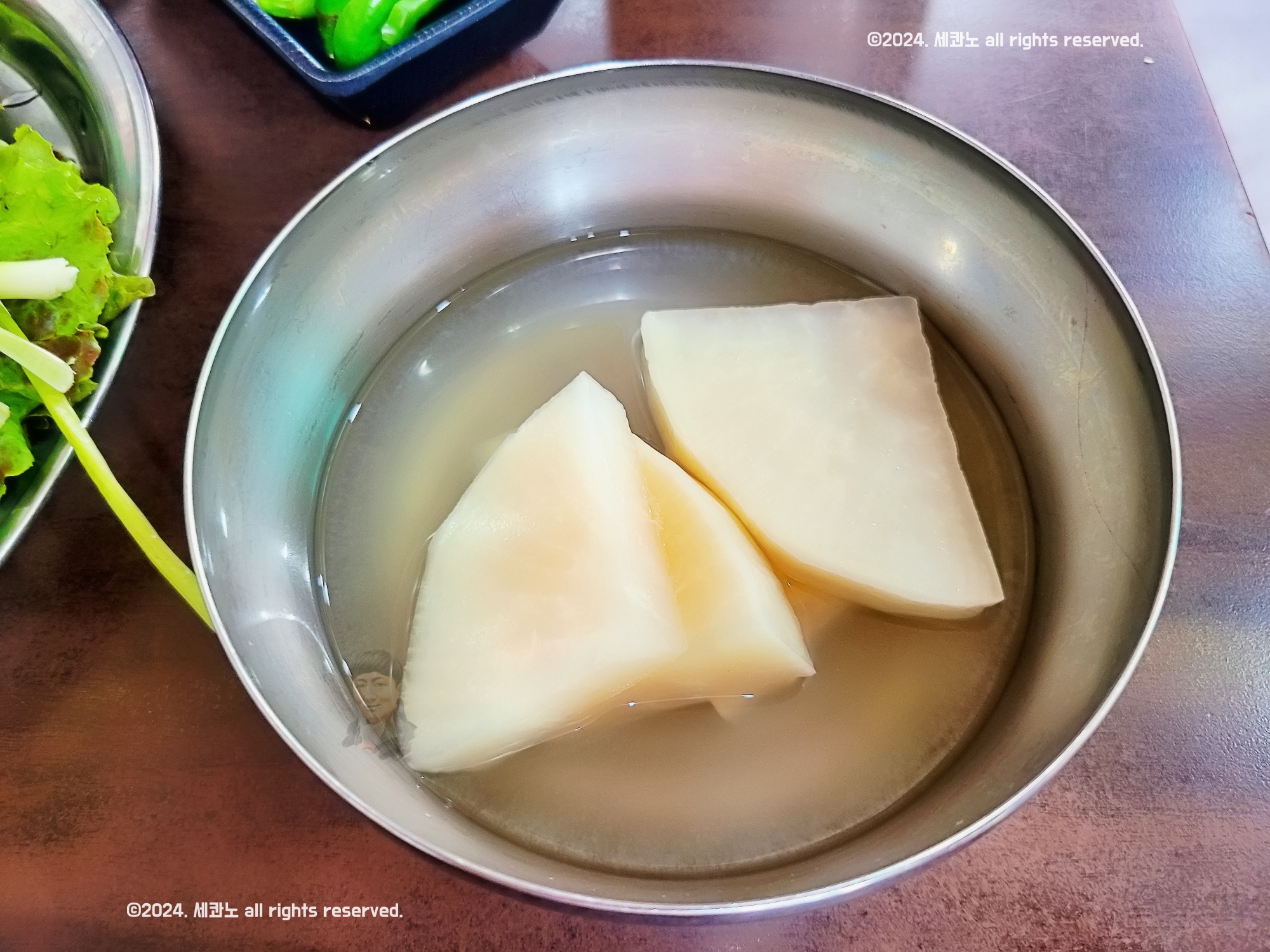 찬으로 나온 동치미가 시원하고 맛이 있어