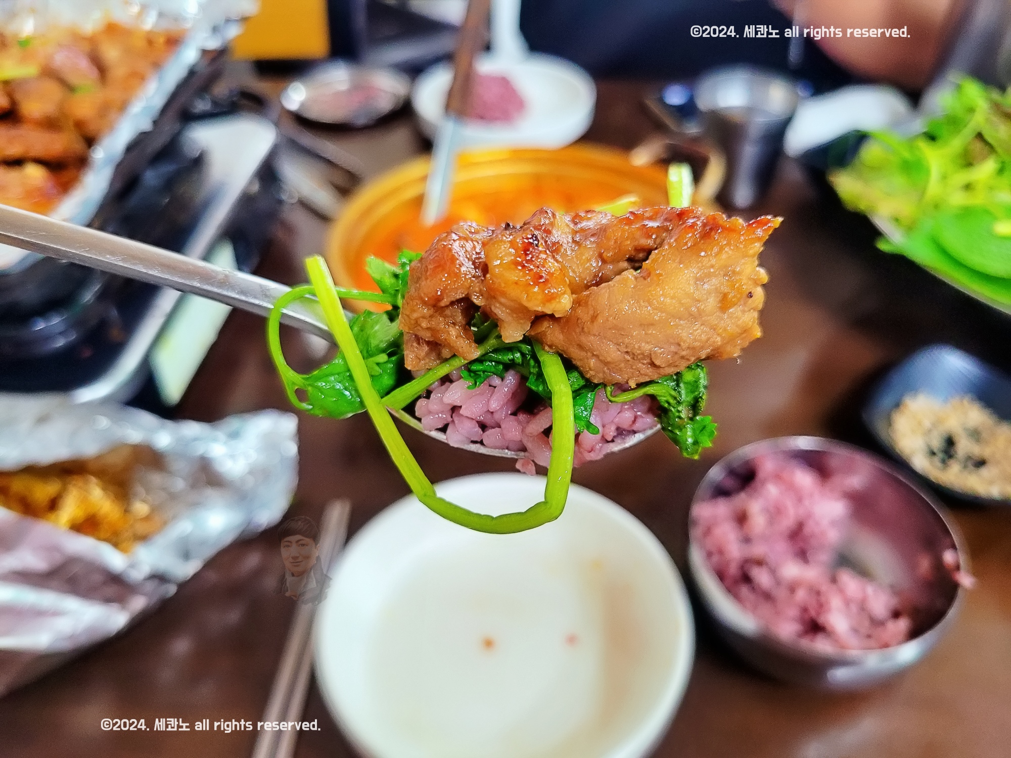 고수 주는 돼지갈비 맛집으로 유명하다.