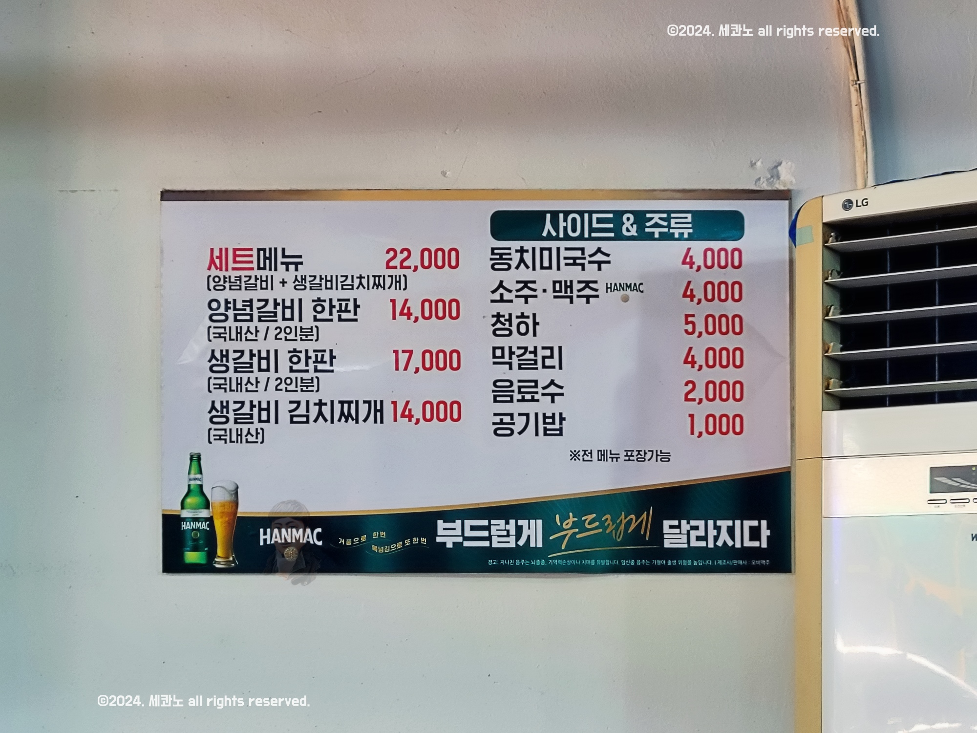 세트메뉴 (양념갈비 + 생갈비 김치찌개) 22,000원