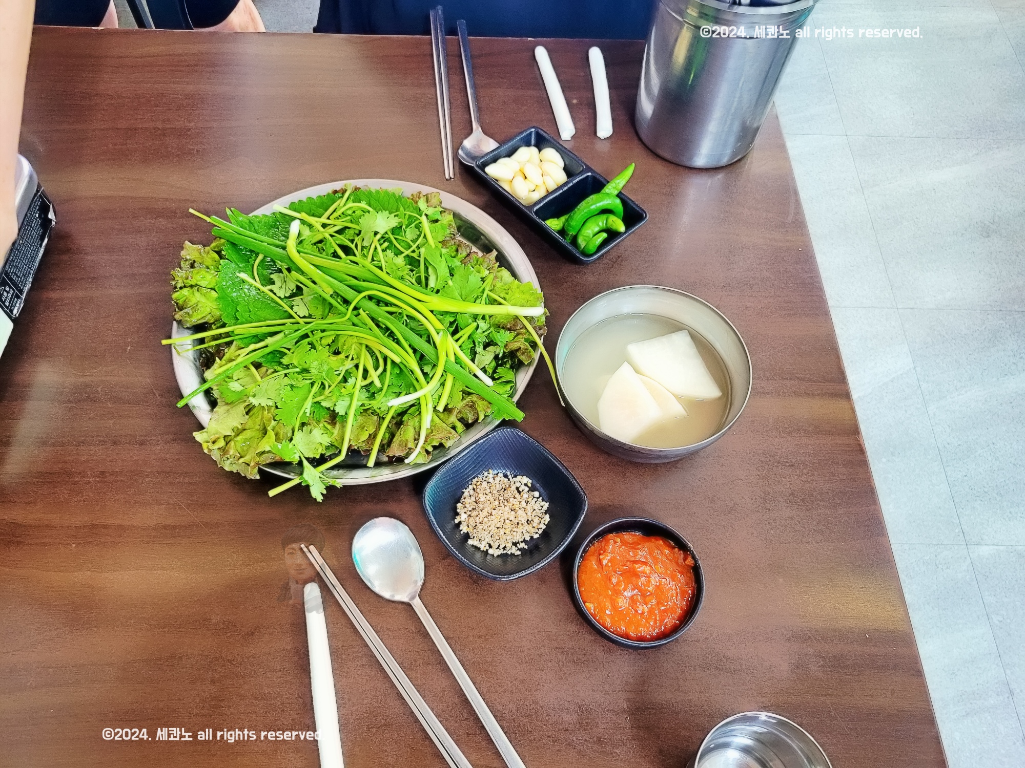 상추 및 깻잎, 쪽파도 함께 나오기는 하고.