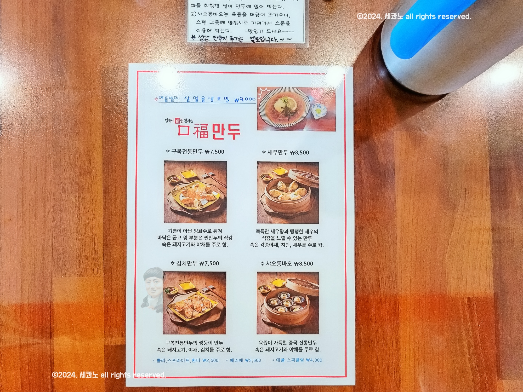 대표메뉴 : 구복전통만두 7,500원. 샤오롱바오 8,500원.