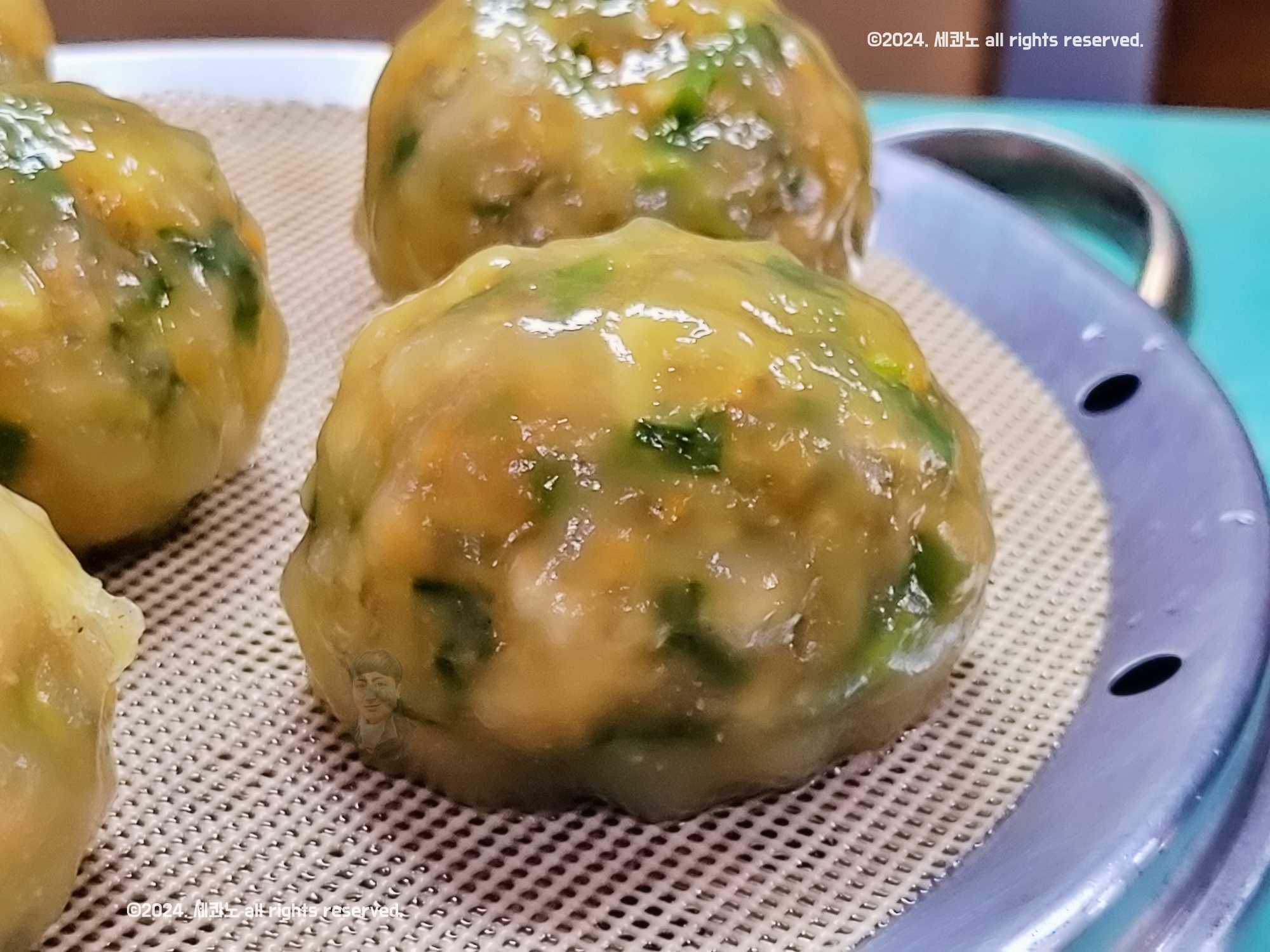 큼지막하게 썰어낸 채소가 들어간 만두소의 굴림만두는
