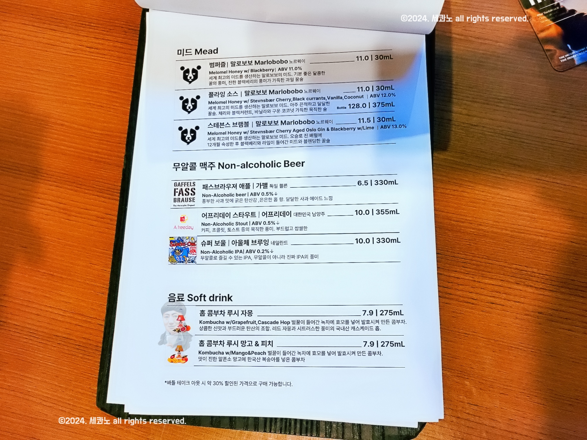 꿀주인 미드와 무알콜 맥주도 있었다.