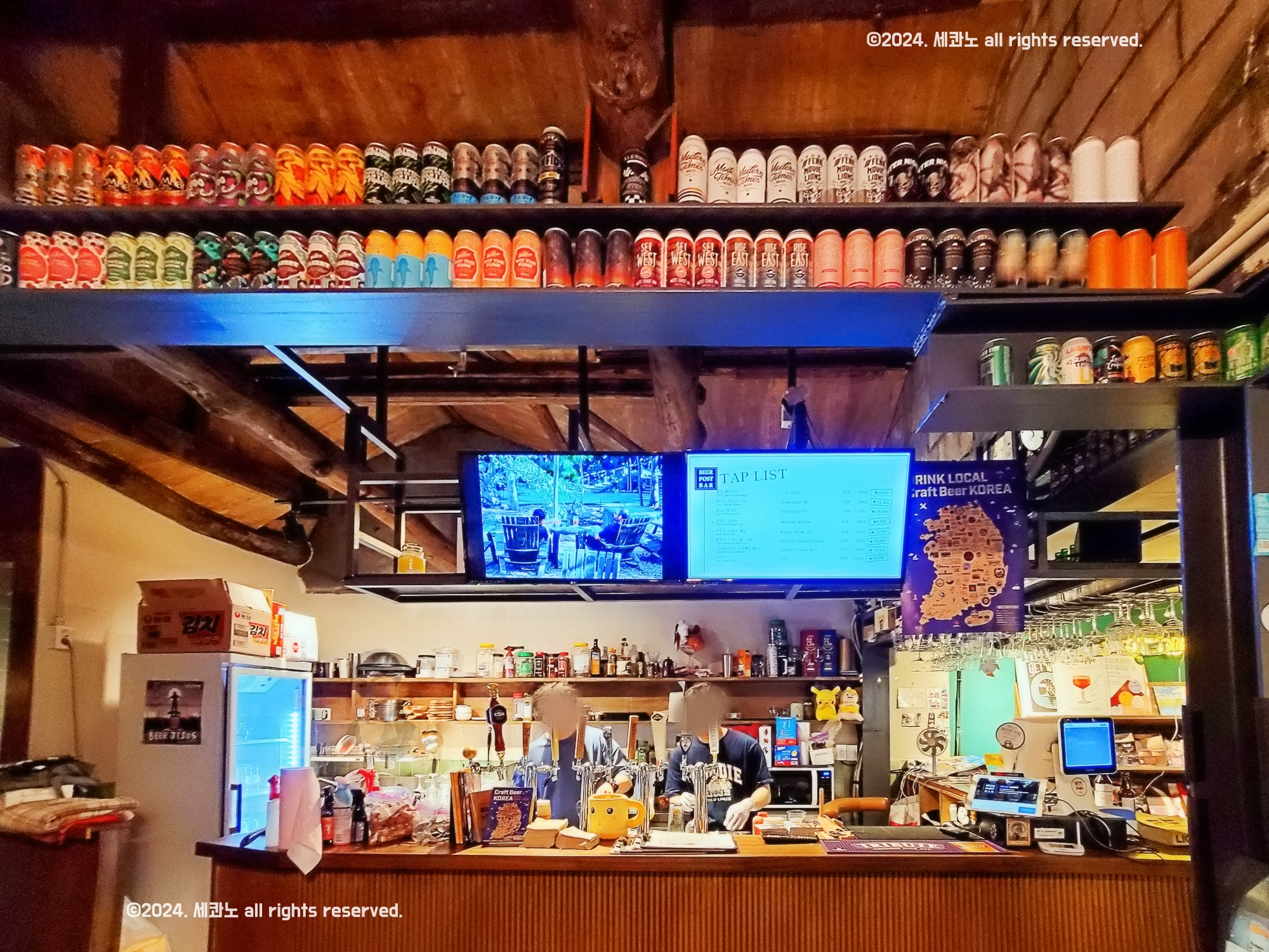천장 쪽으로는 맥주캔을 진열해 두었고