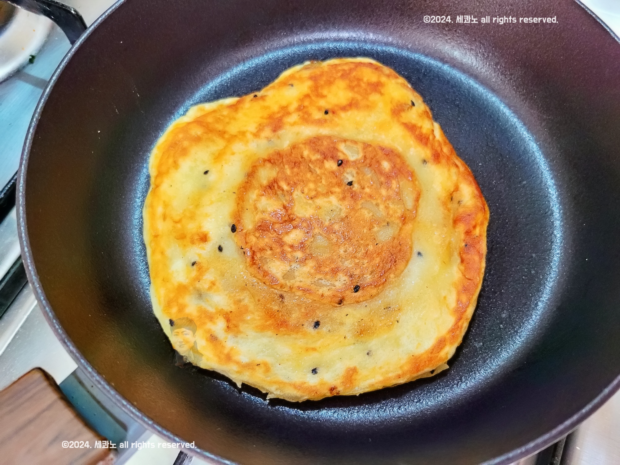 동그란 호떡 반죽을 누르개로 한번 뽁! 눌러