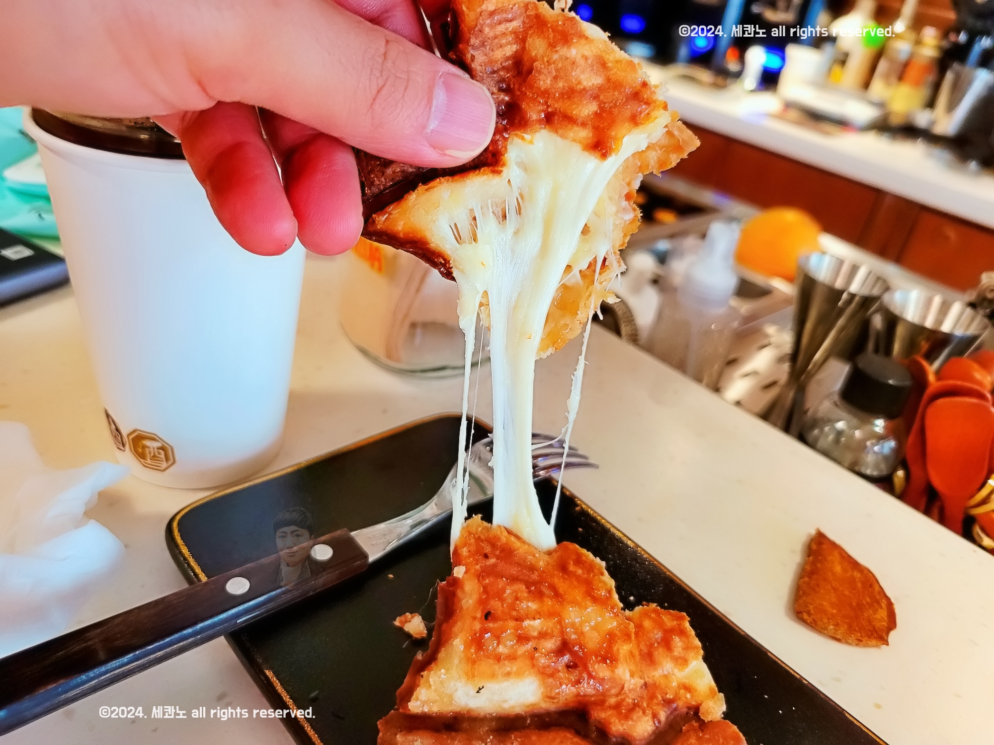 치즈가 쭈욱 늘어나는 걸 확인할 수 있었다.