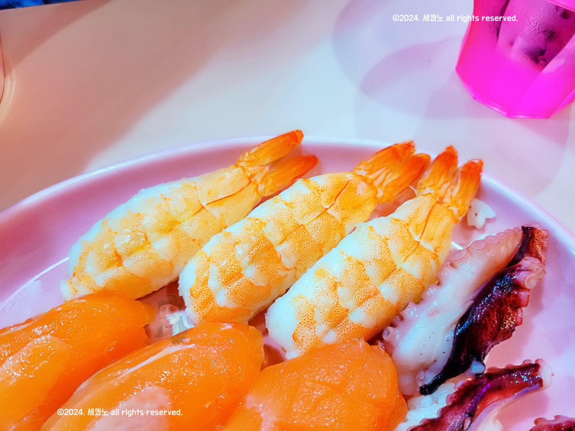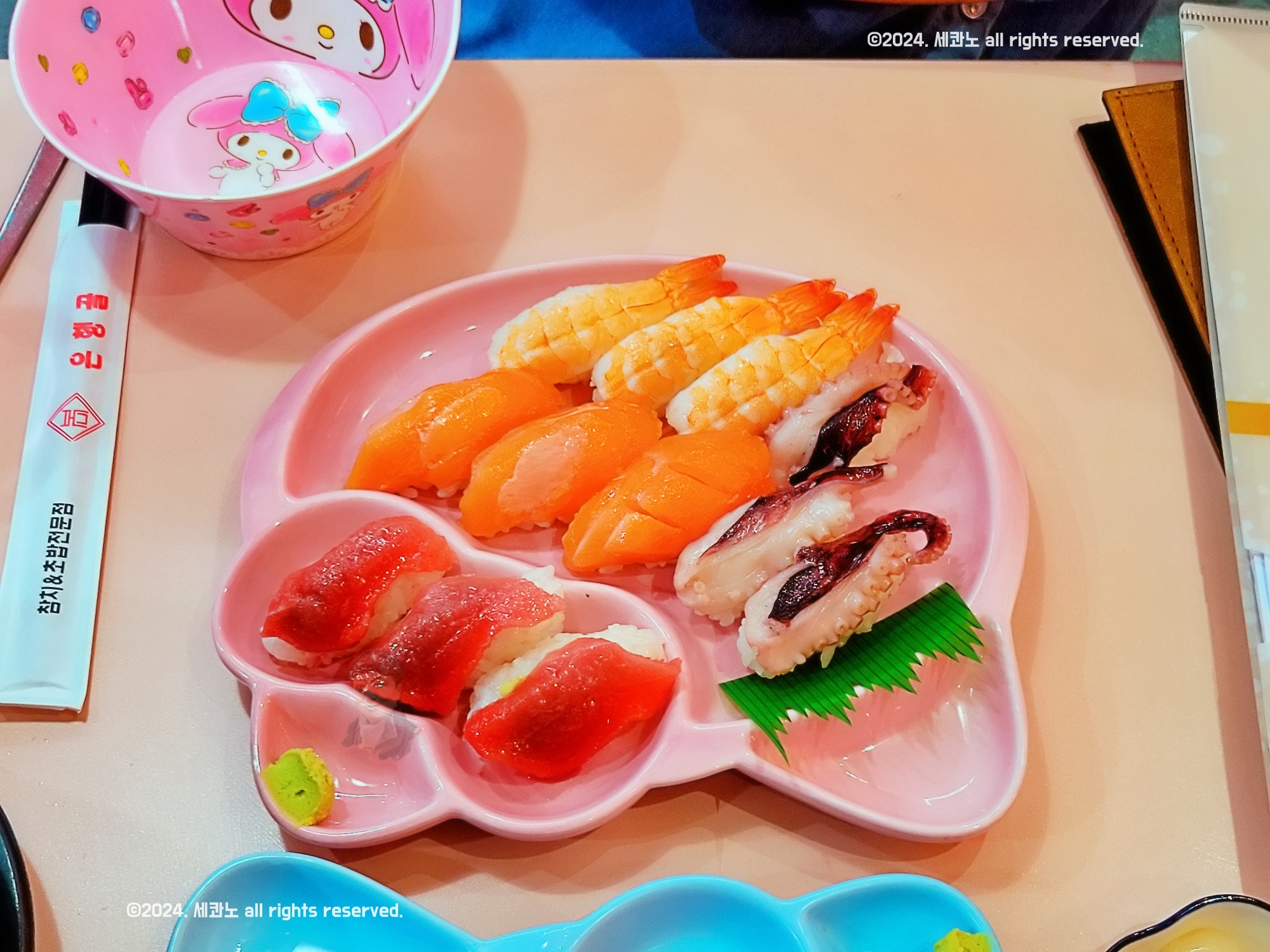 특미초밥 아까미 3, 연어 3, 찐새우 3, 문어 3