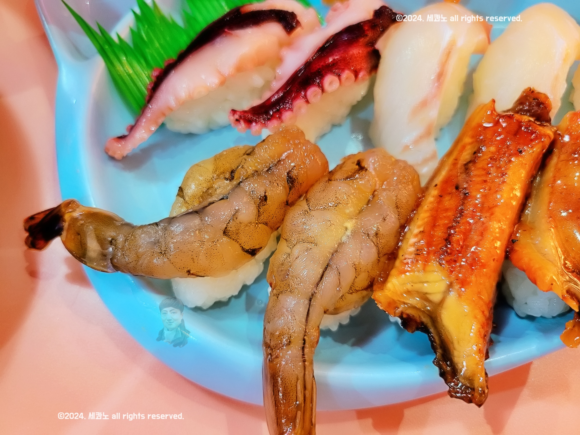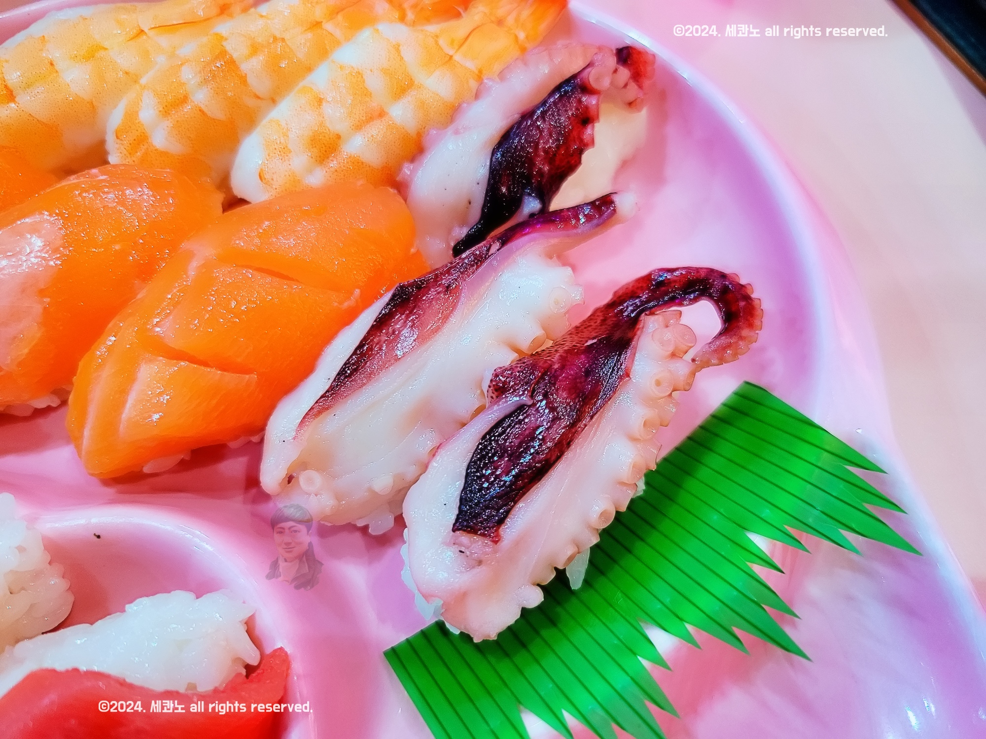 특미초밥 아까미 3, 연어 3, 찐새우 3, 문어 3