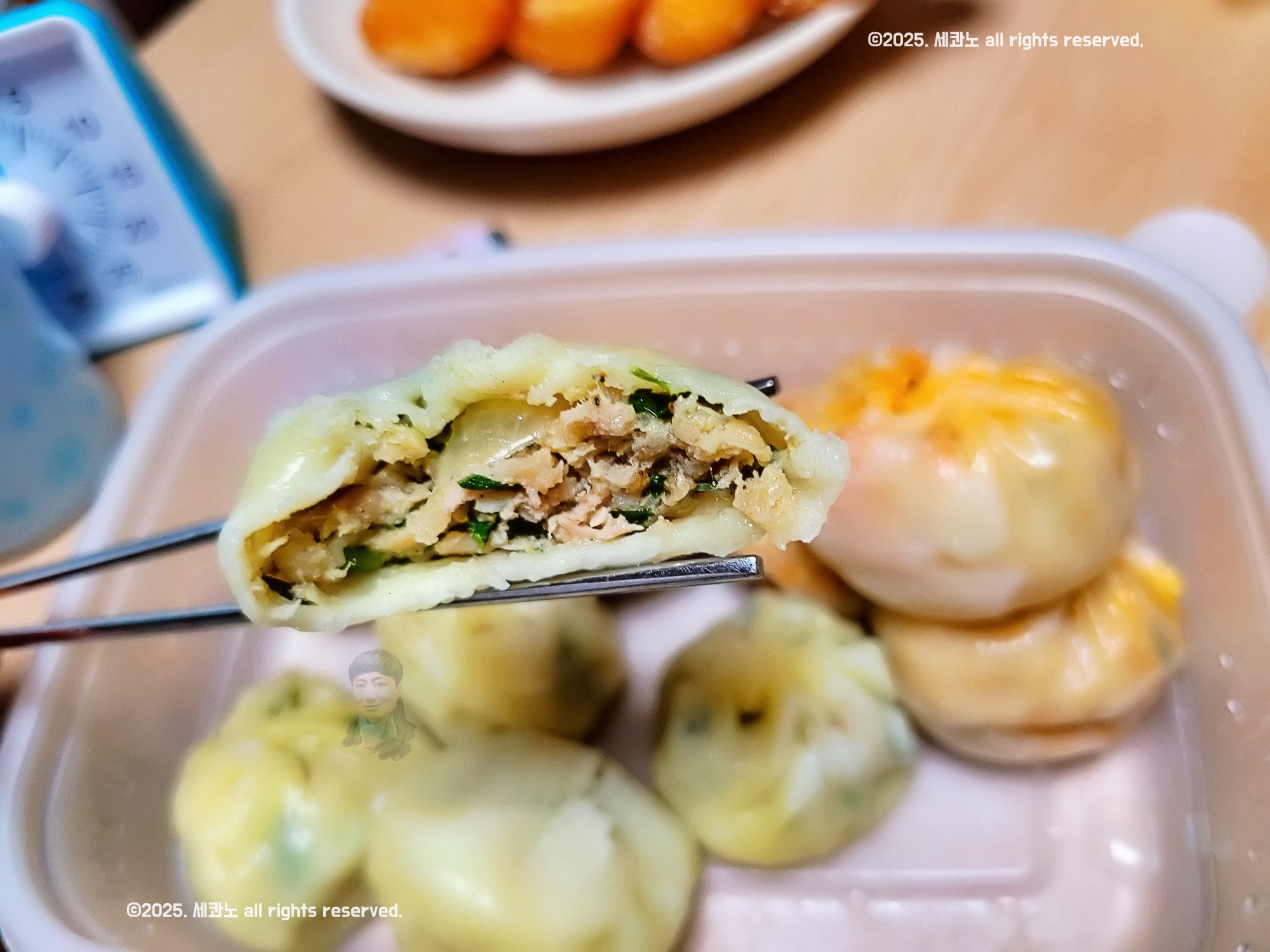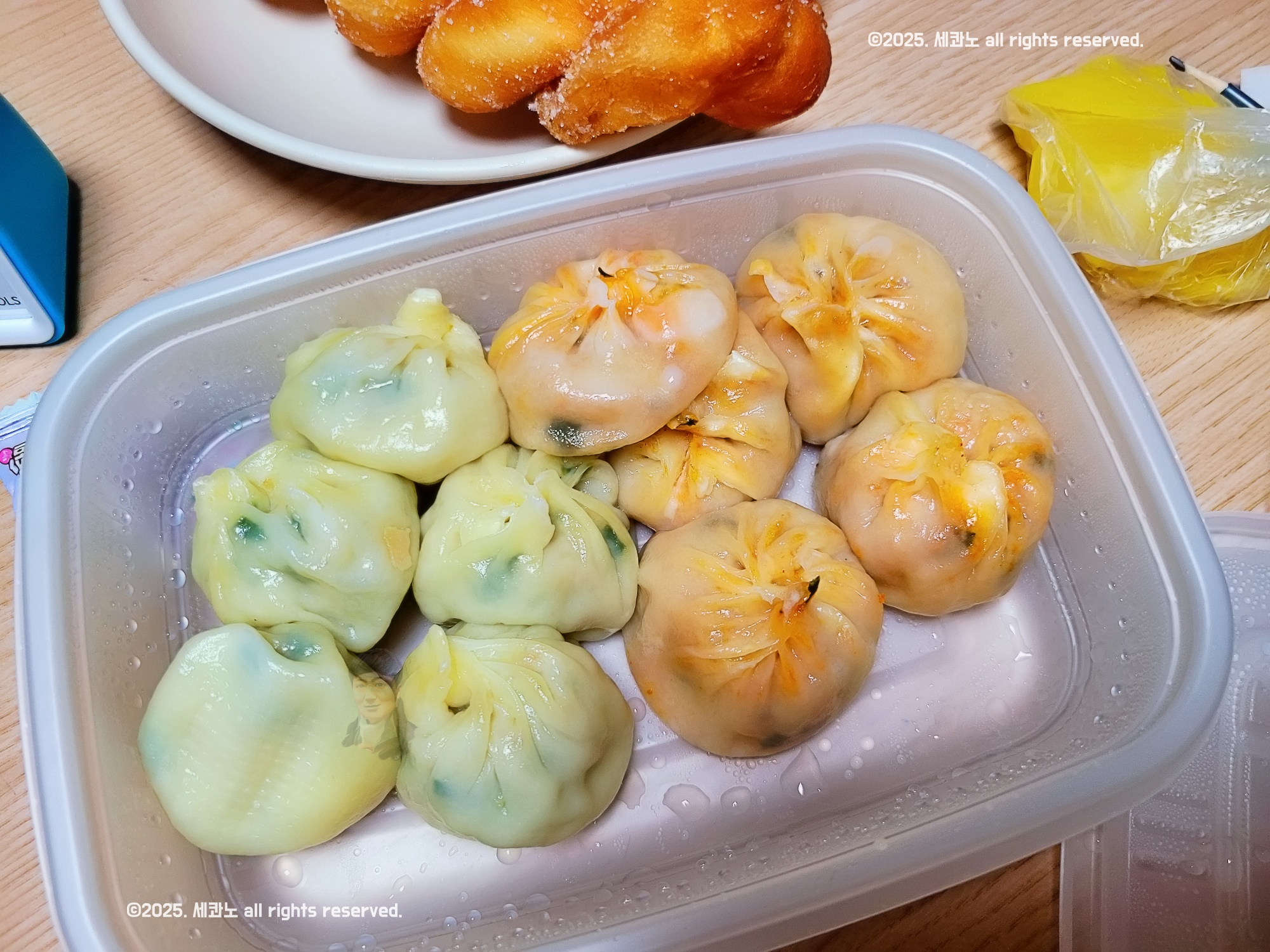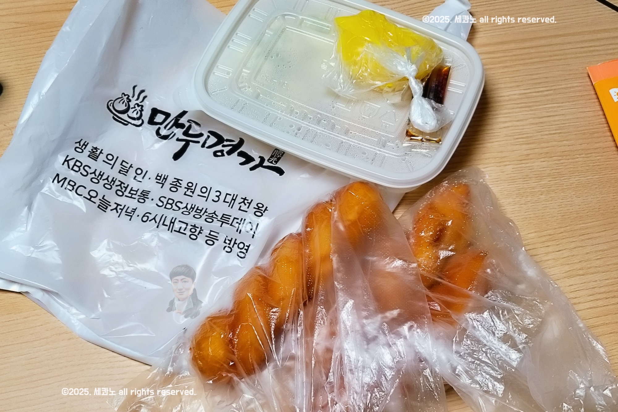 꽈배기와 함께 만두를 포장해 돌아왔다.