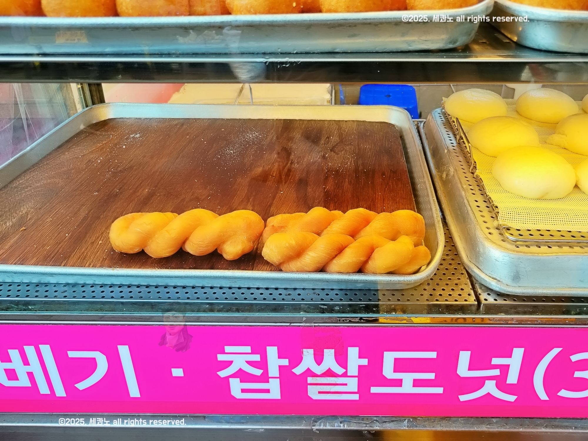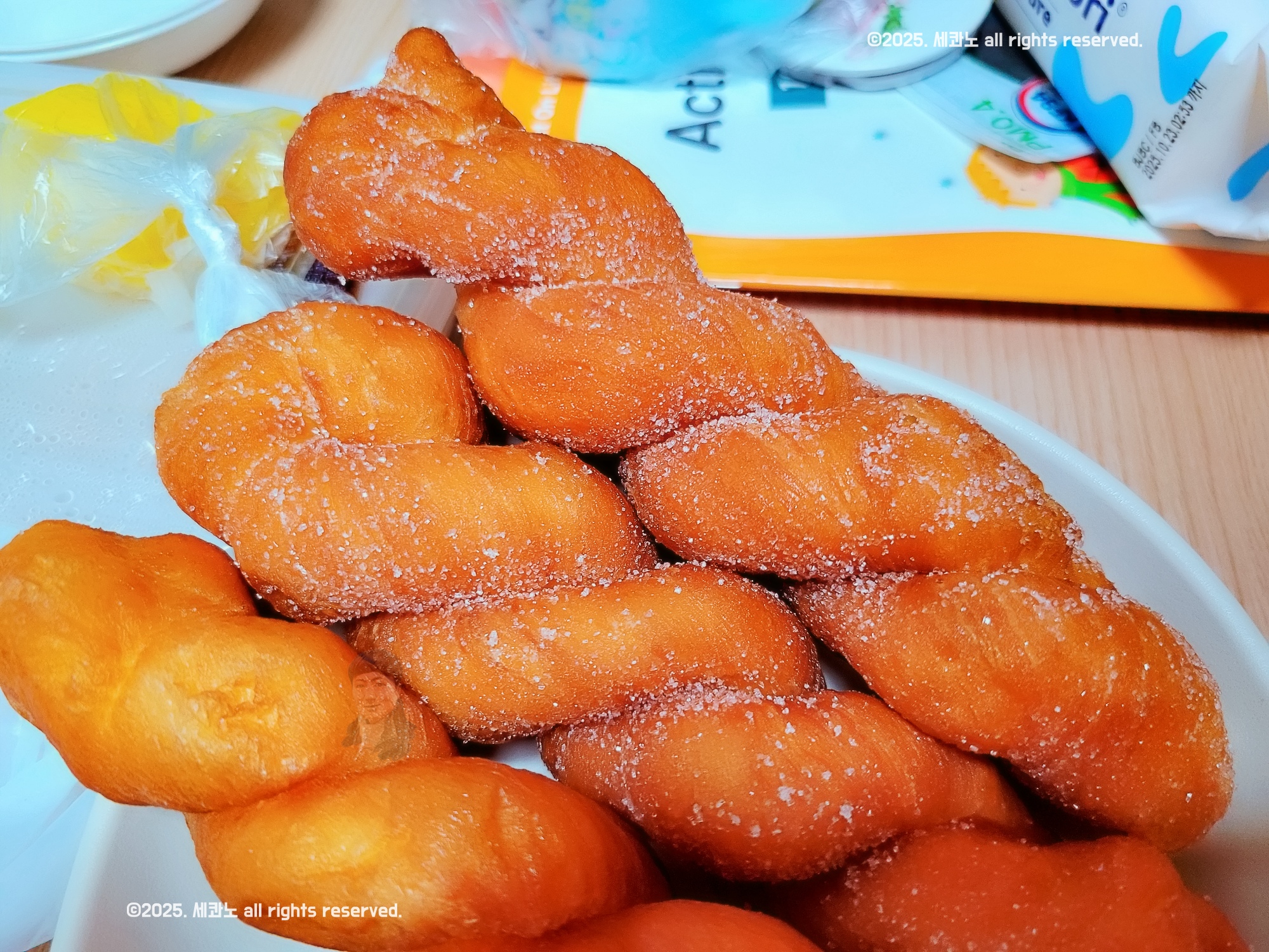 좌측에는 꽈배기와 도너츠가 진열되어 있었고