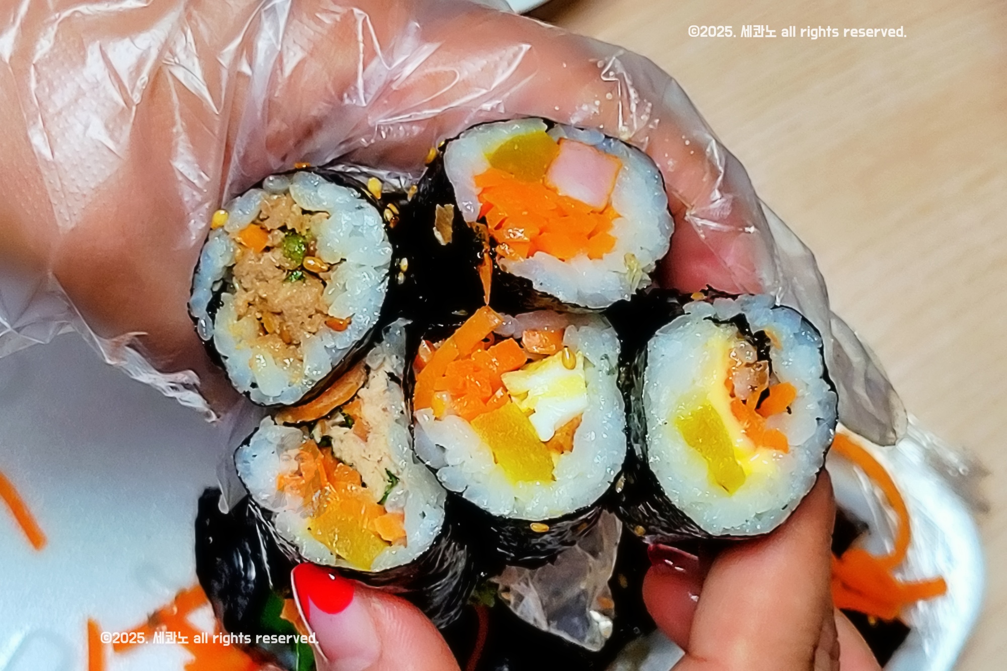 꼬마김밥 커팅 안 해주며, 종류 선택 불가능하다.