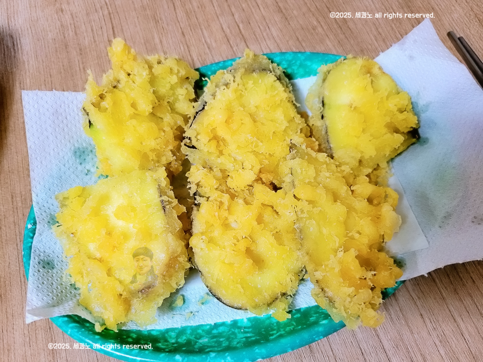 (오징어2, 깻잎김말이 1, 밤고구마 1, 마늘멘보 1)