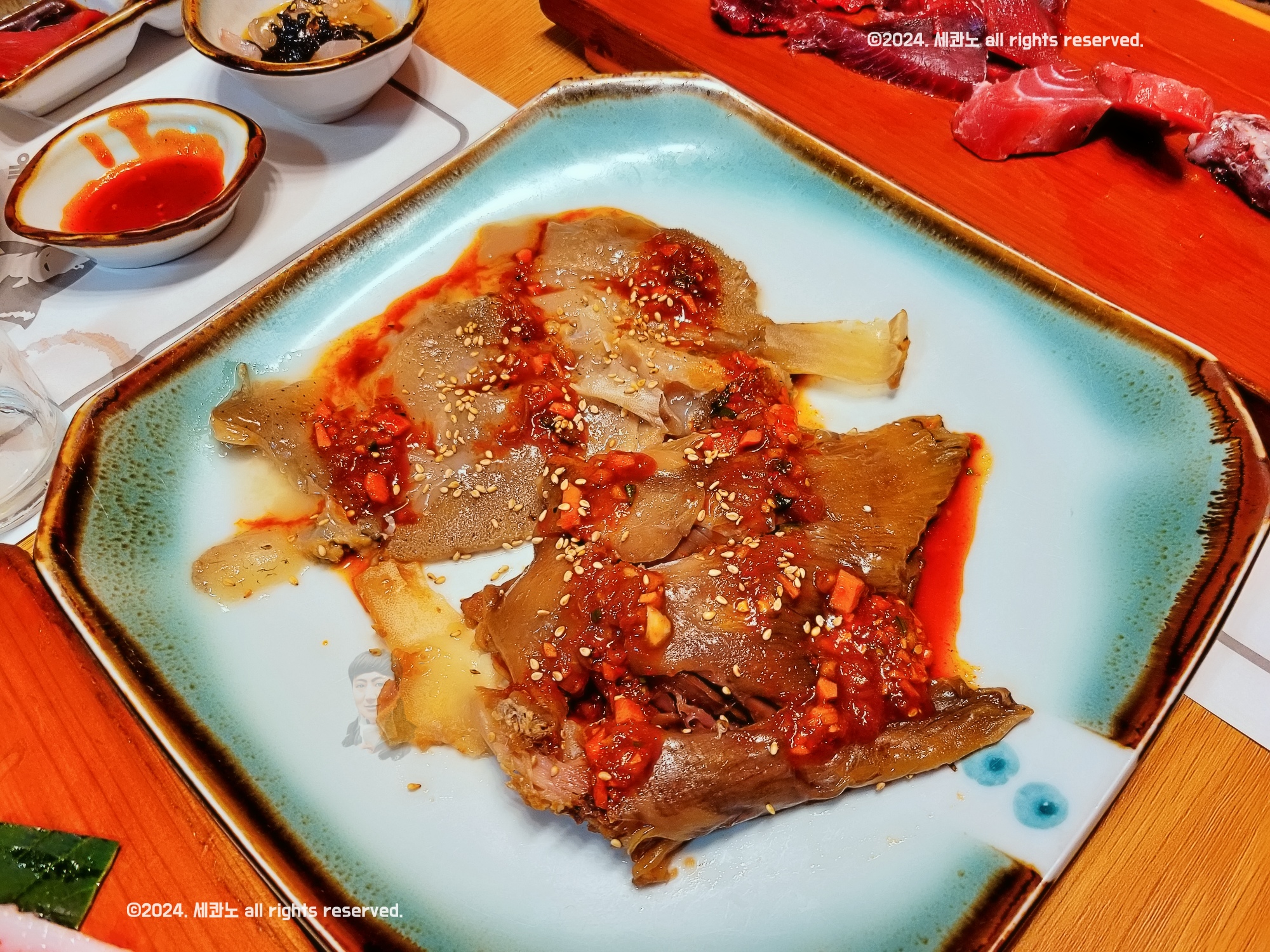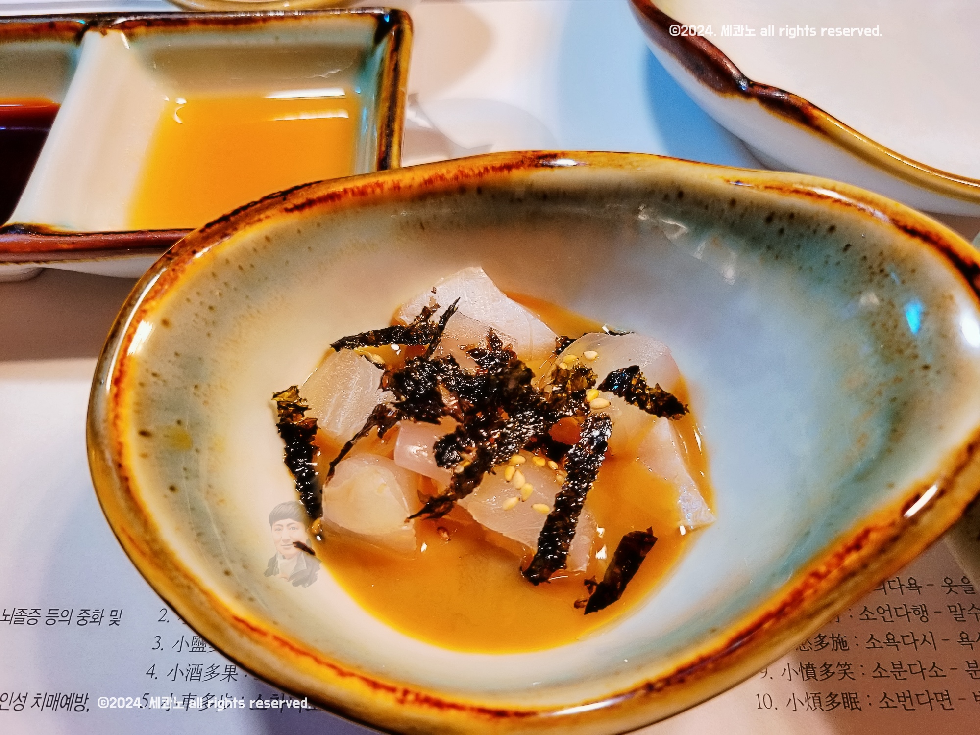 흰살 생선, 광어회가 들어간 해삼내장 젓갈 고노와다와