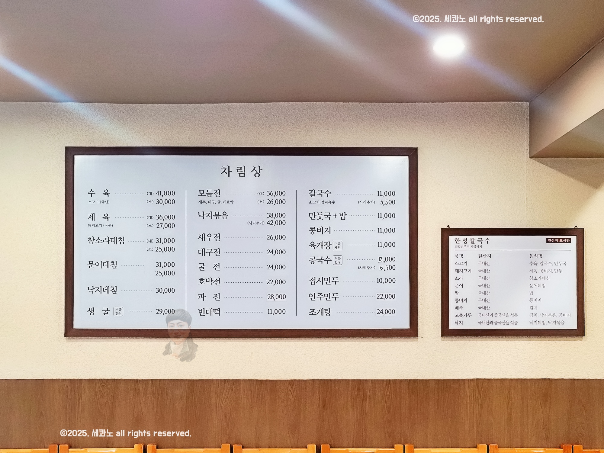 대표메뉴 : 칼국수 11,000원. 수육 소 30,000원