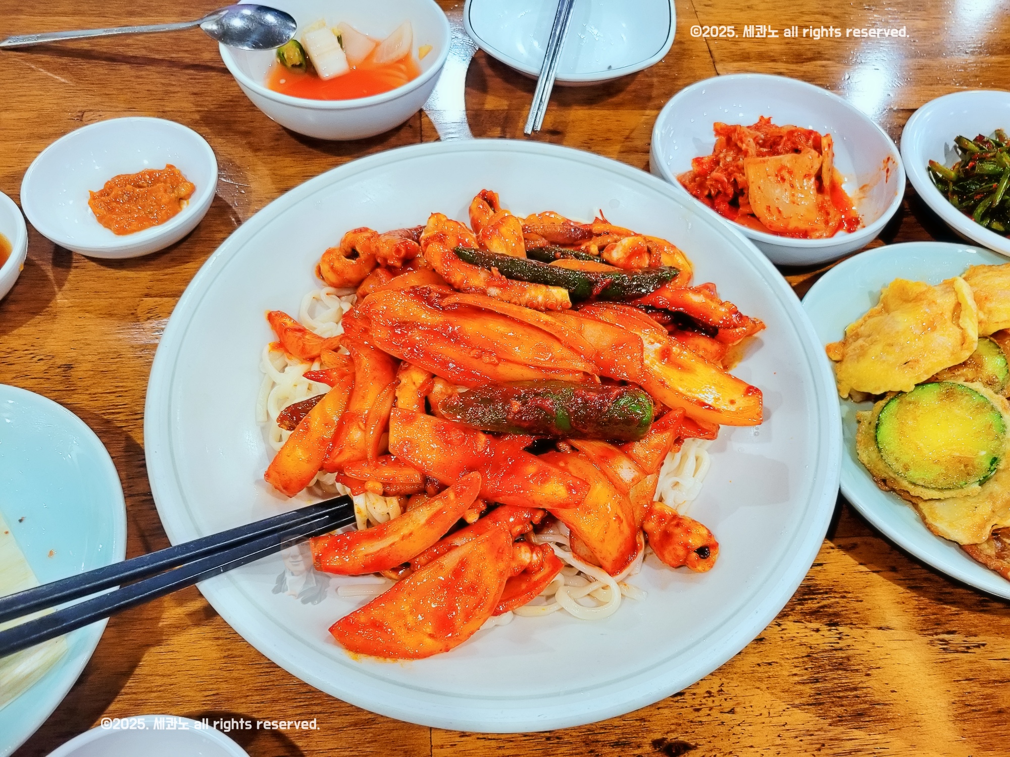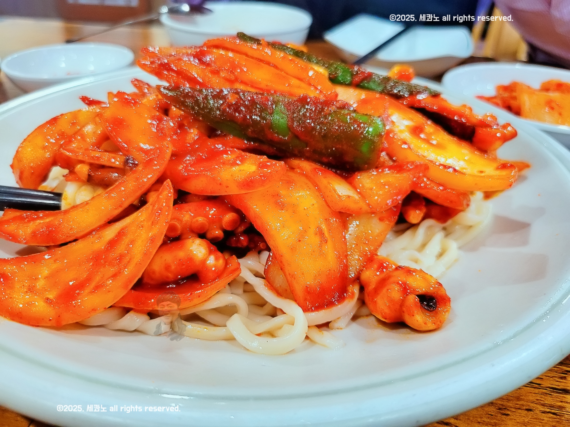아래에 칼국수 사리가 깔려 있었다.