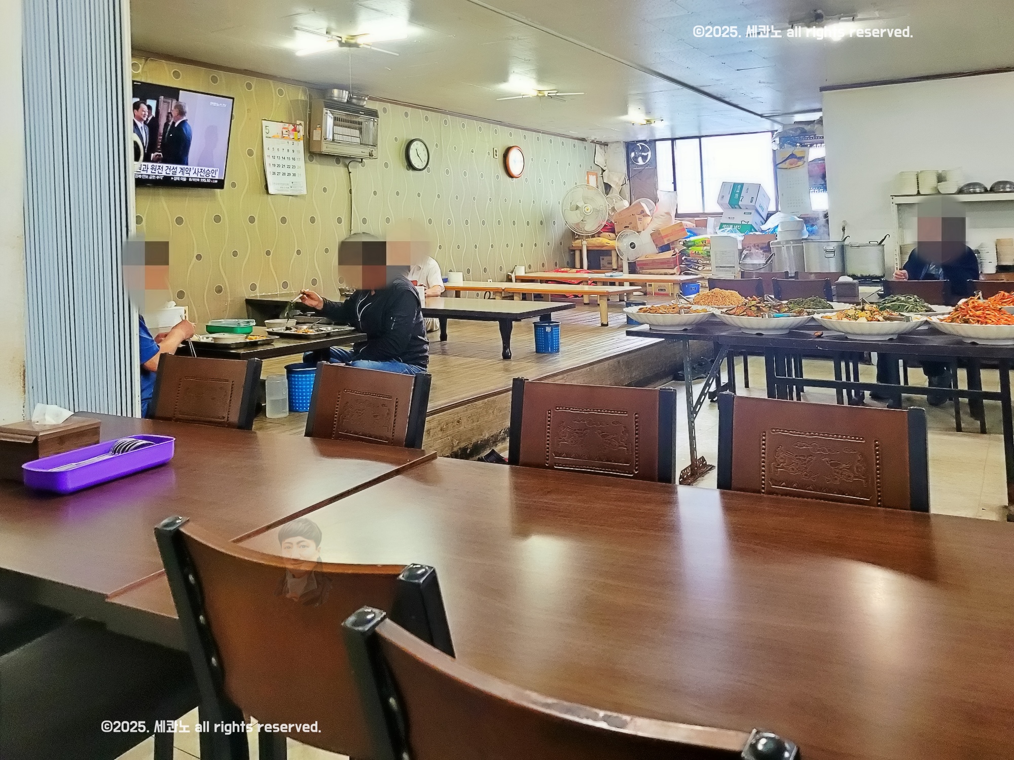 좁은 골목 안쪽 2층에 있는 점심뷔페 서산식당.