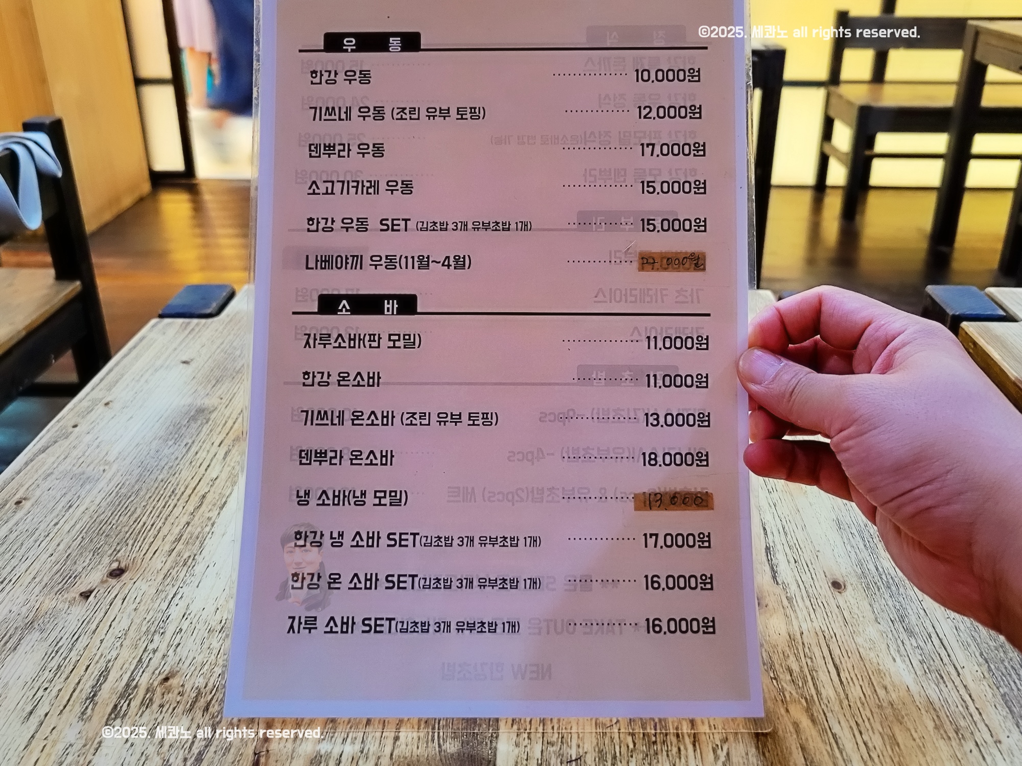 세콰노는 한강 우동 SET 15,000원을 주문하였다.