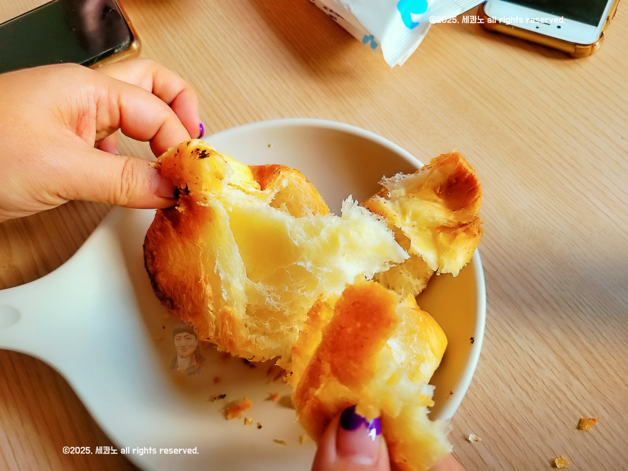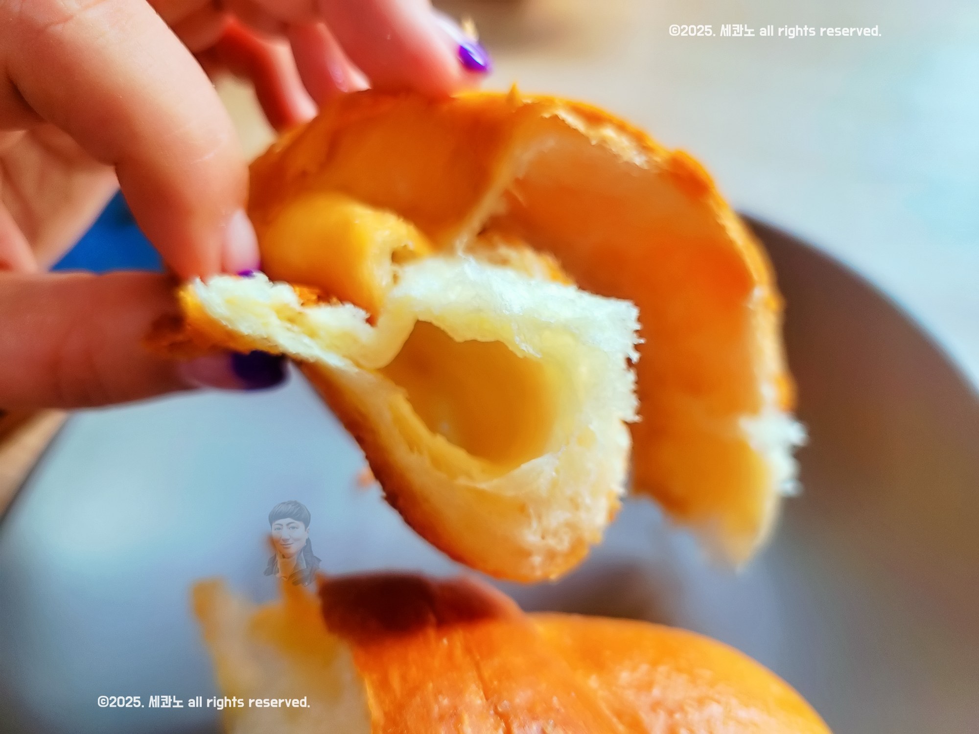 그 단면에는 노란 버터가 가득 발라져 있는 걸