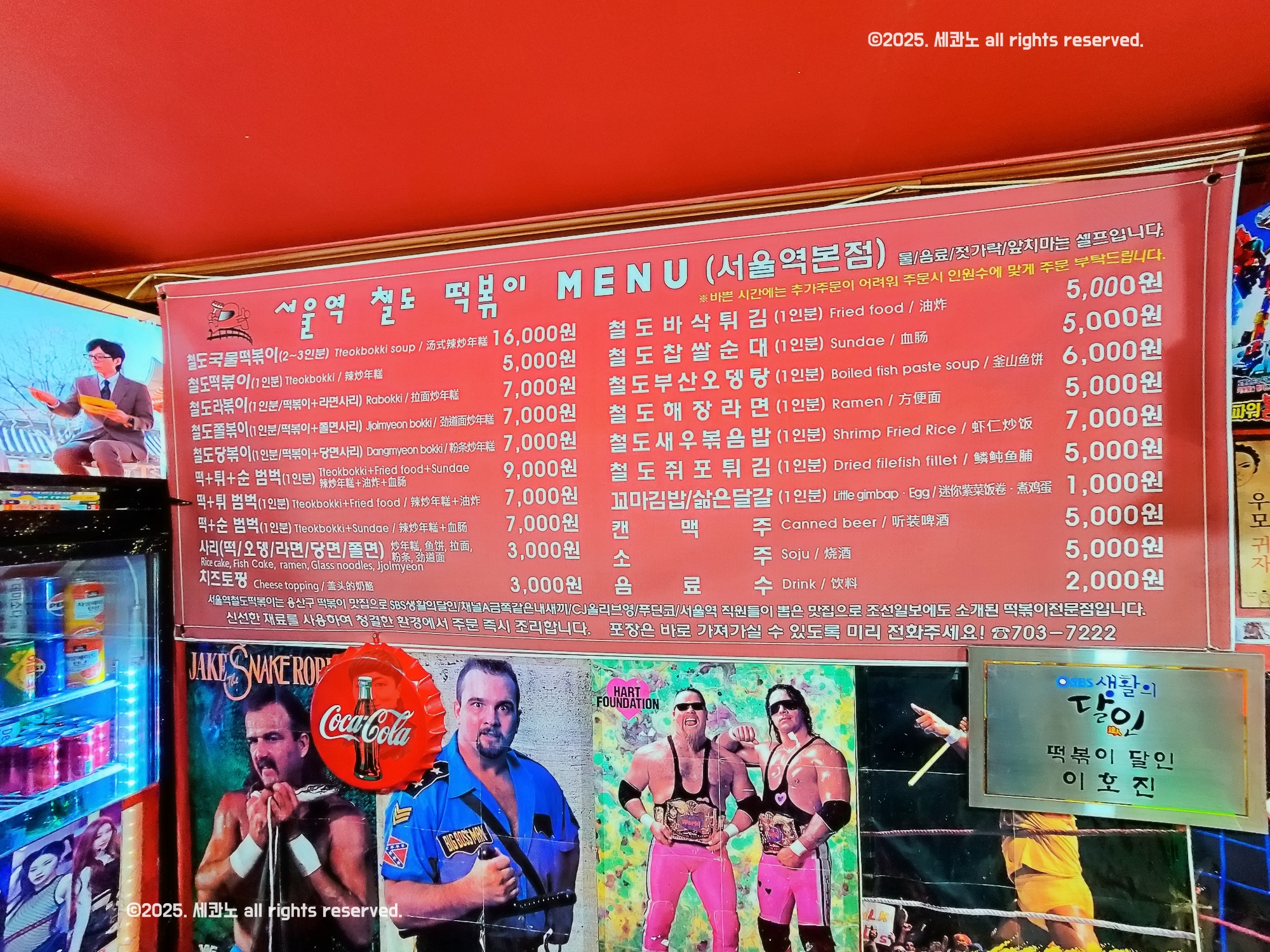 0.5배로 찍어서 넓게 보이지만 실제로는 의자가 4개 정도의 솔직히 2인 테이블 공간이에요. 그래서 많은 분들이 포장이나 배달을 이용하시는 것 같더라구요. 벽면 곳곳에는 생활의 달인 출연 당시의 사진과 각종 사인들이 붙어있어 방송 효과를 실감할 수 있었습니다.