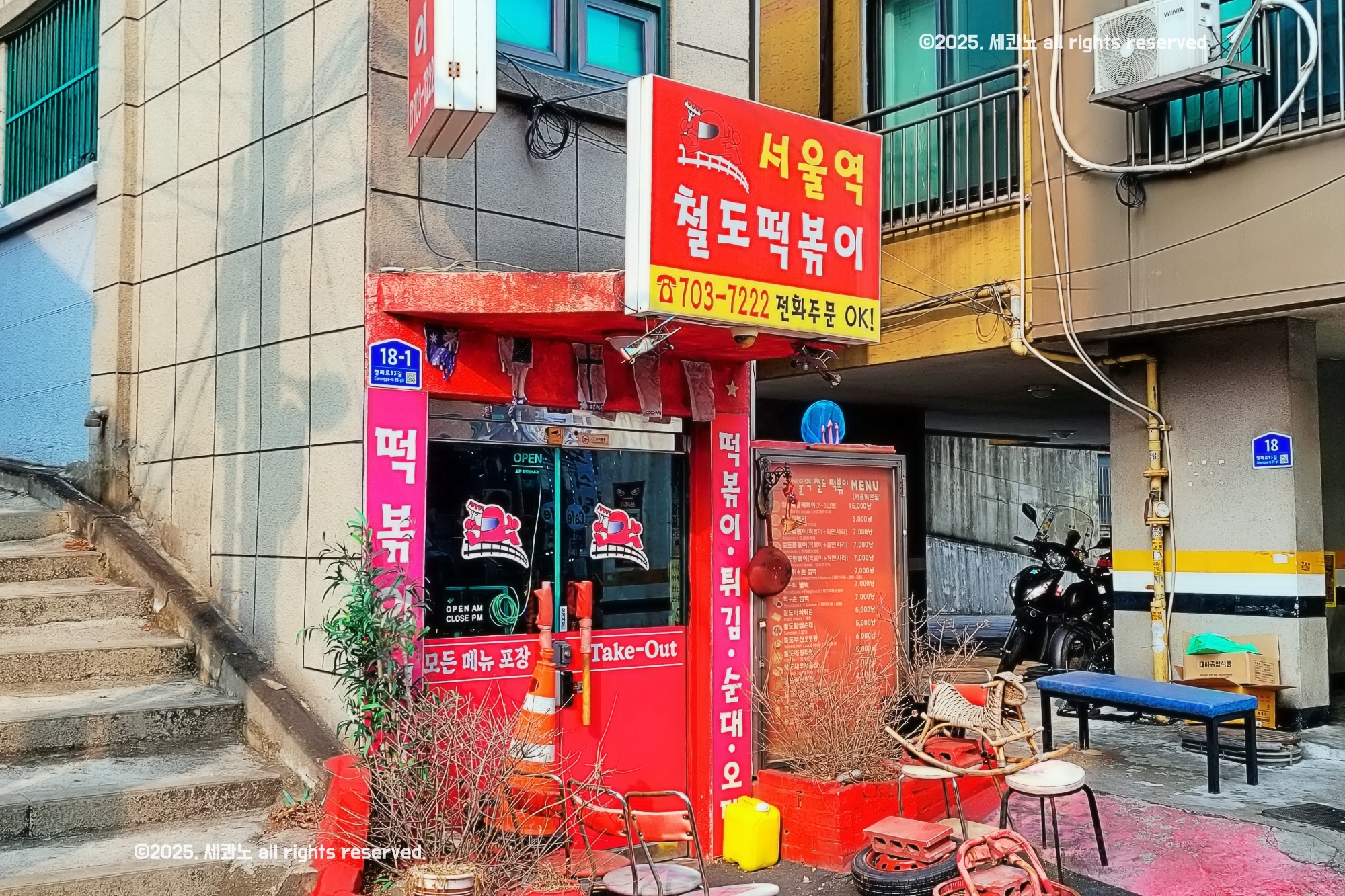 서울역 공항철도 방향 15번 출구로 나와 신호등을 건너면 골목길이 나타납니다. 도보로 약 5분 정도, 신호등 대기시간까지 포함해서 그 정도 걸렸어요. 상호 앞에 '서울역'이 붙어있는데, 철길떡볶이와는 다른 곳입니다. 철길떡볶이는 충정로역 방면의 오래된 노포인데, 아직 남아있는지 모르겠더라구요.