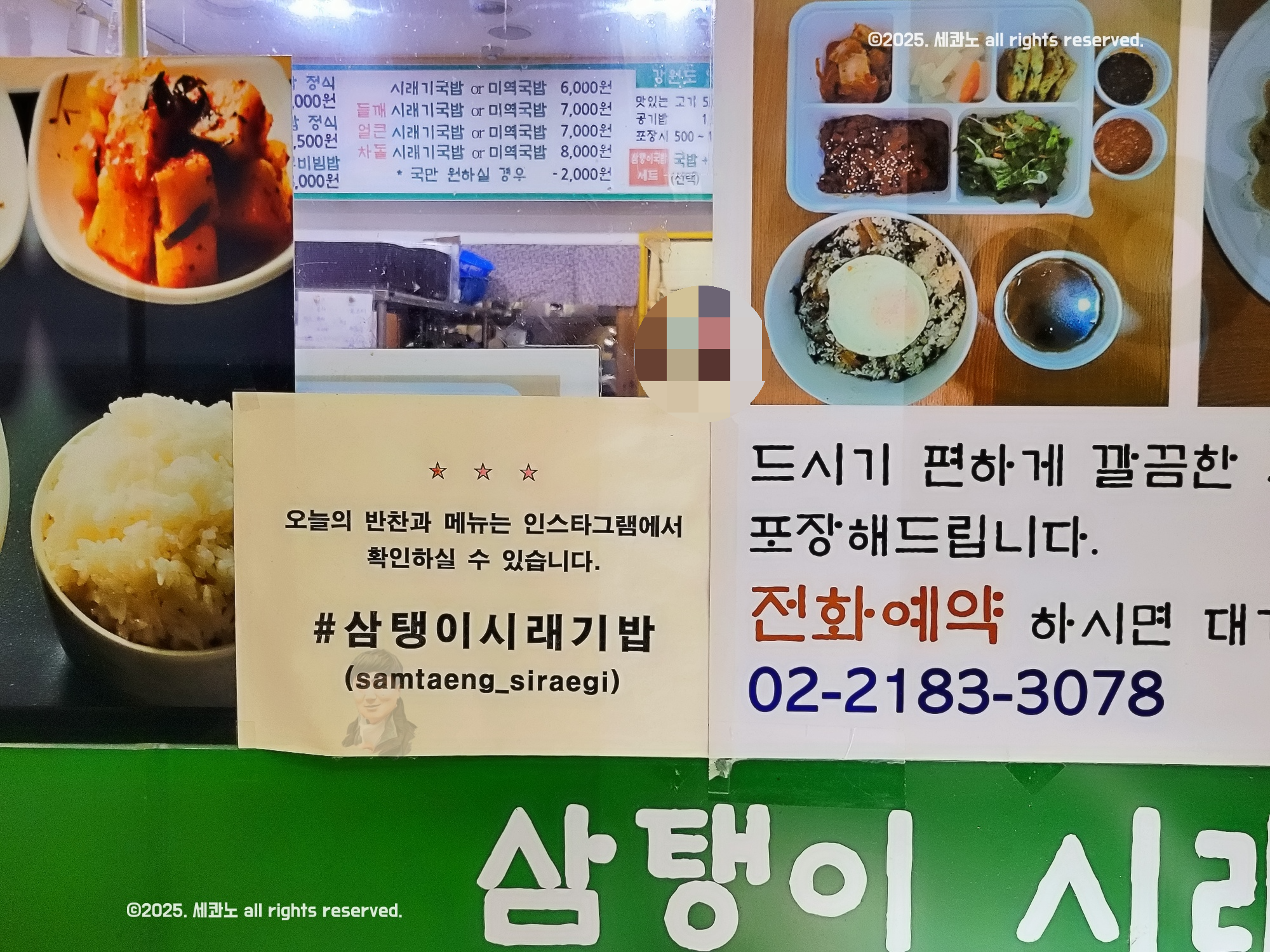 대표메뉴 : 시래기국밥 6,000원. 정식 9,000원