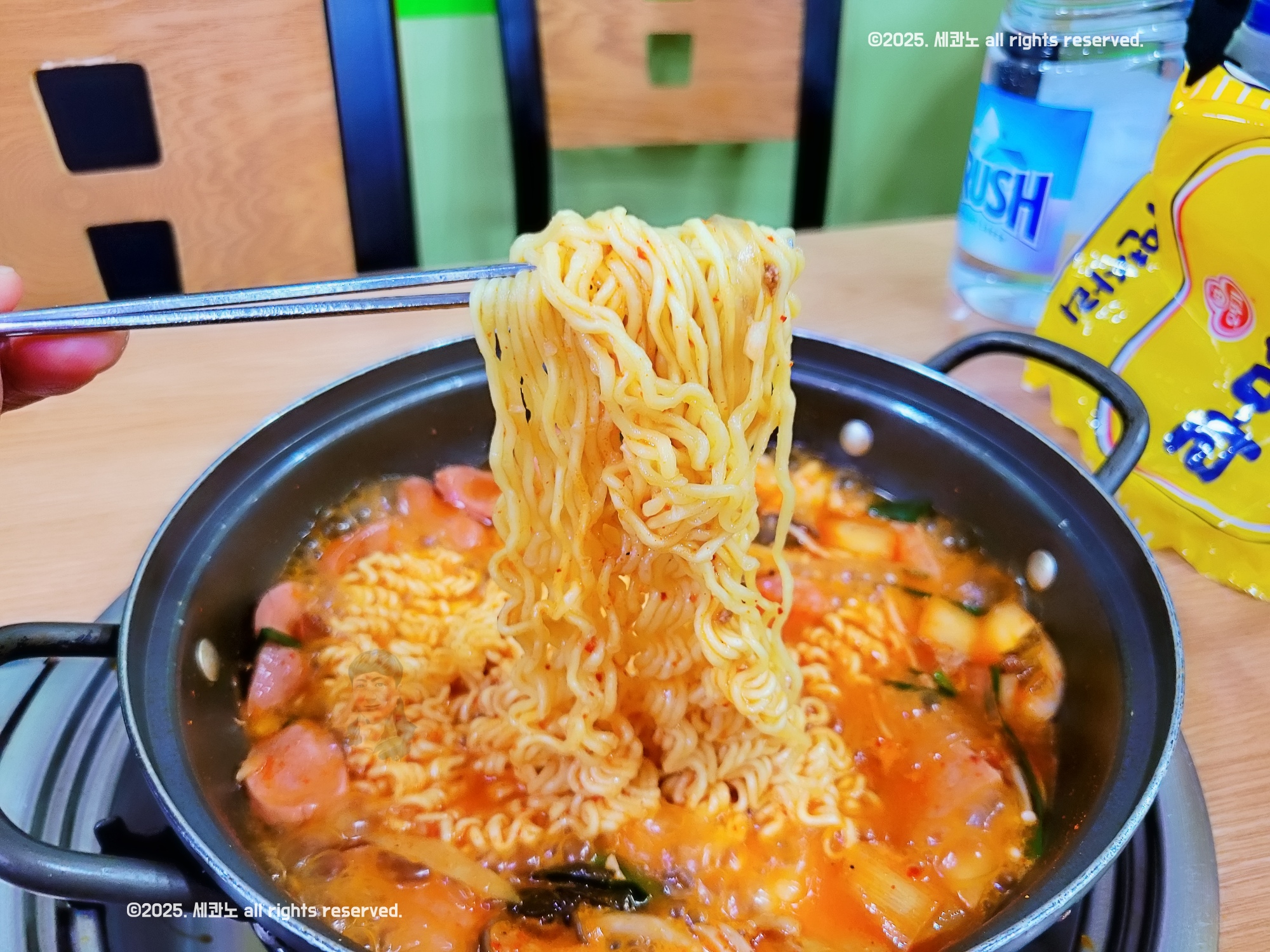 그 사이 라면 하나 넣고 보글보글 끓여서