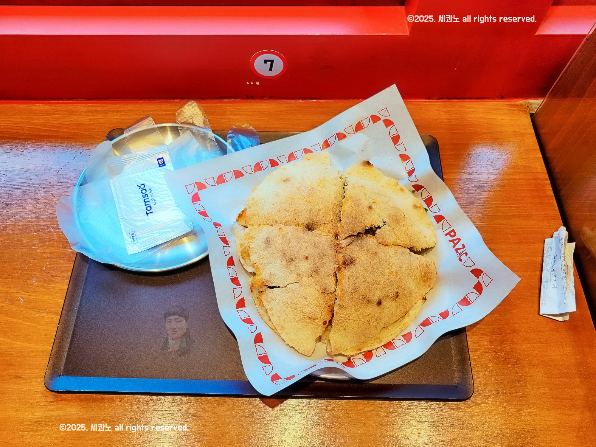 4조각으로 제공되니 여러 메뉴는 나눠 먹어보라 적혀 있다.