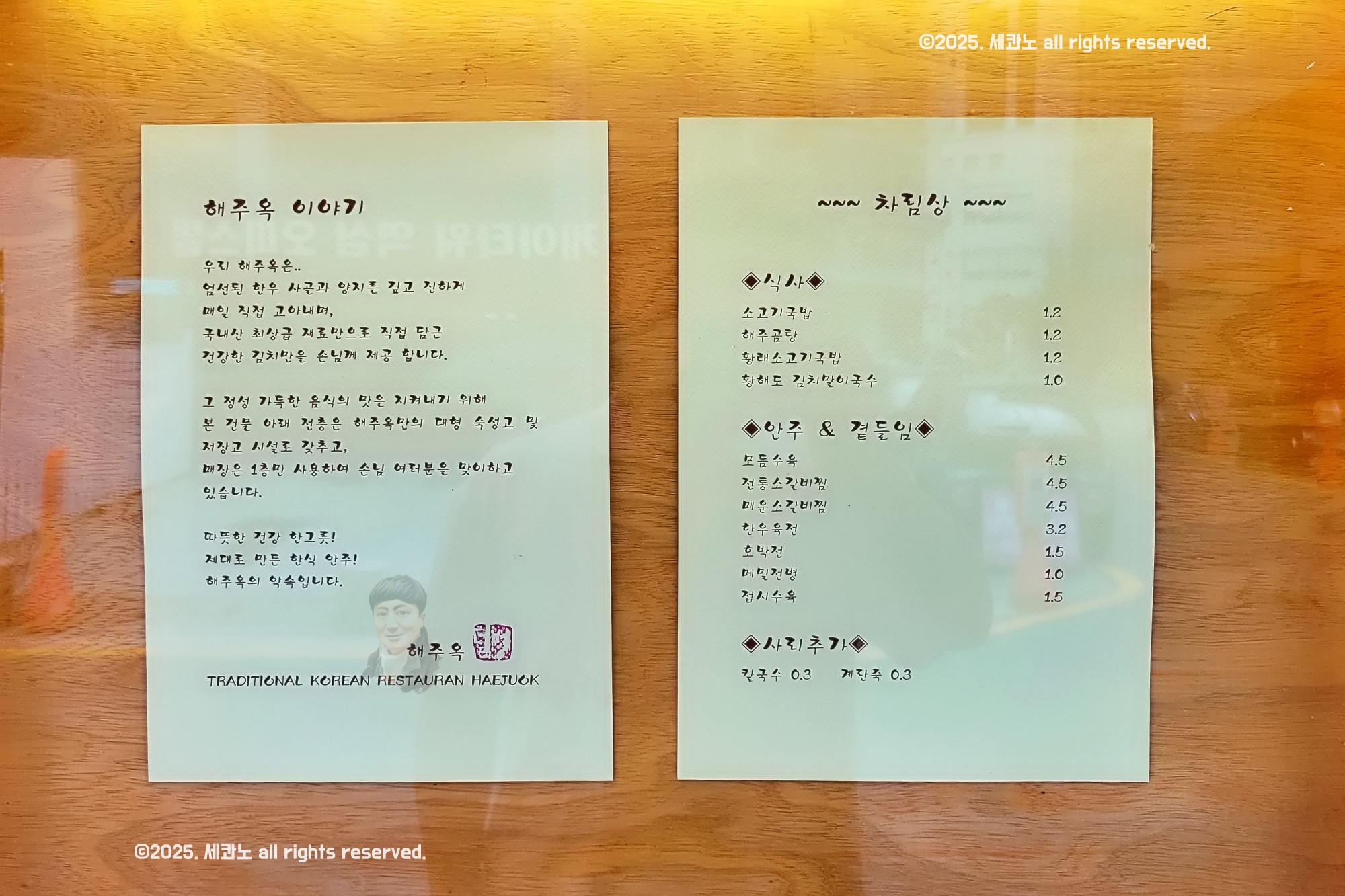 대표메뉴 : 소고기국밥 12,000원. 해주곰탕 12,000원. 황해도 김치말이국수 10,000원.
