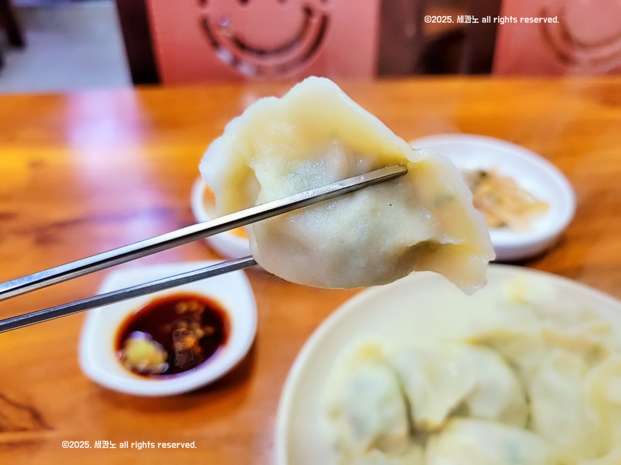 만두소가 피의 두꺼움을 상쇄하고 풍미를 잘 살려주었다.