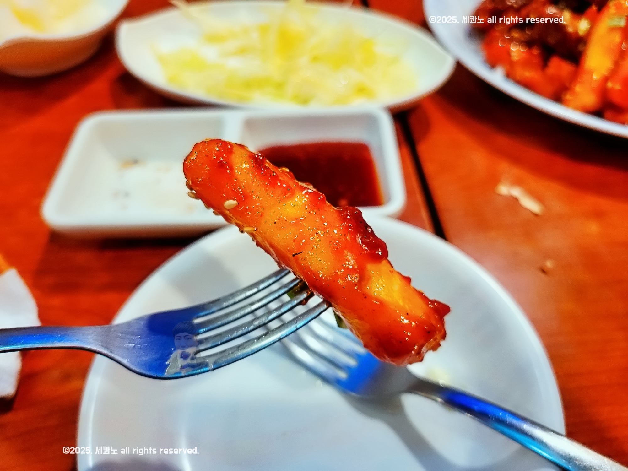 그리고 불닭에 떡볶이 떡이 같이 제공되었다.