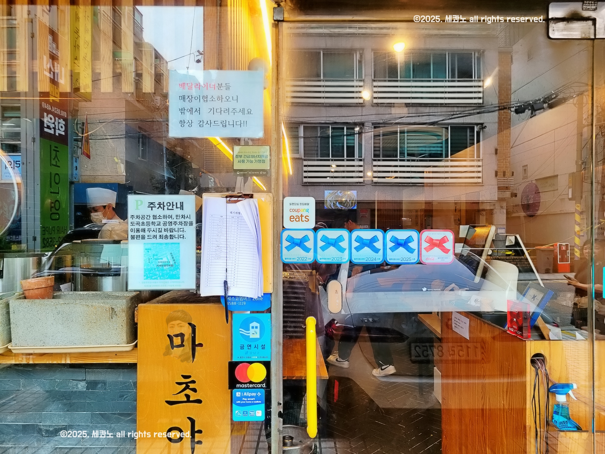 그 중에서도 예전부터 꼭 한번 가봐야겠다 생각했던 곳이 바로 마초야입니다. 입구에 블루리본 서포터즈 인증이 여러 개 붙어있는 걸 보고 호기심이 생겼거든요.