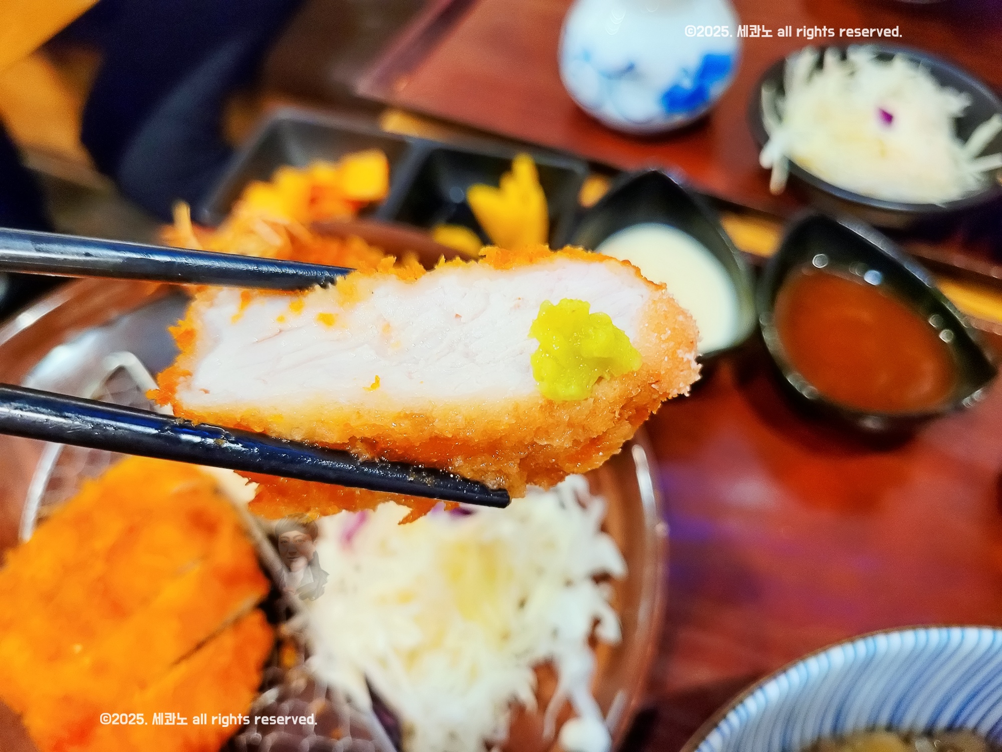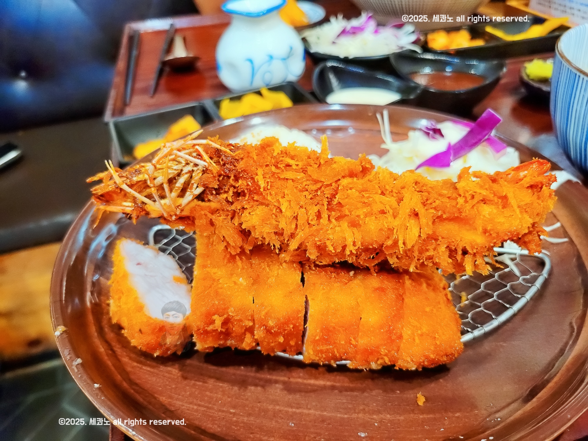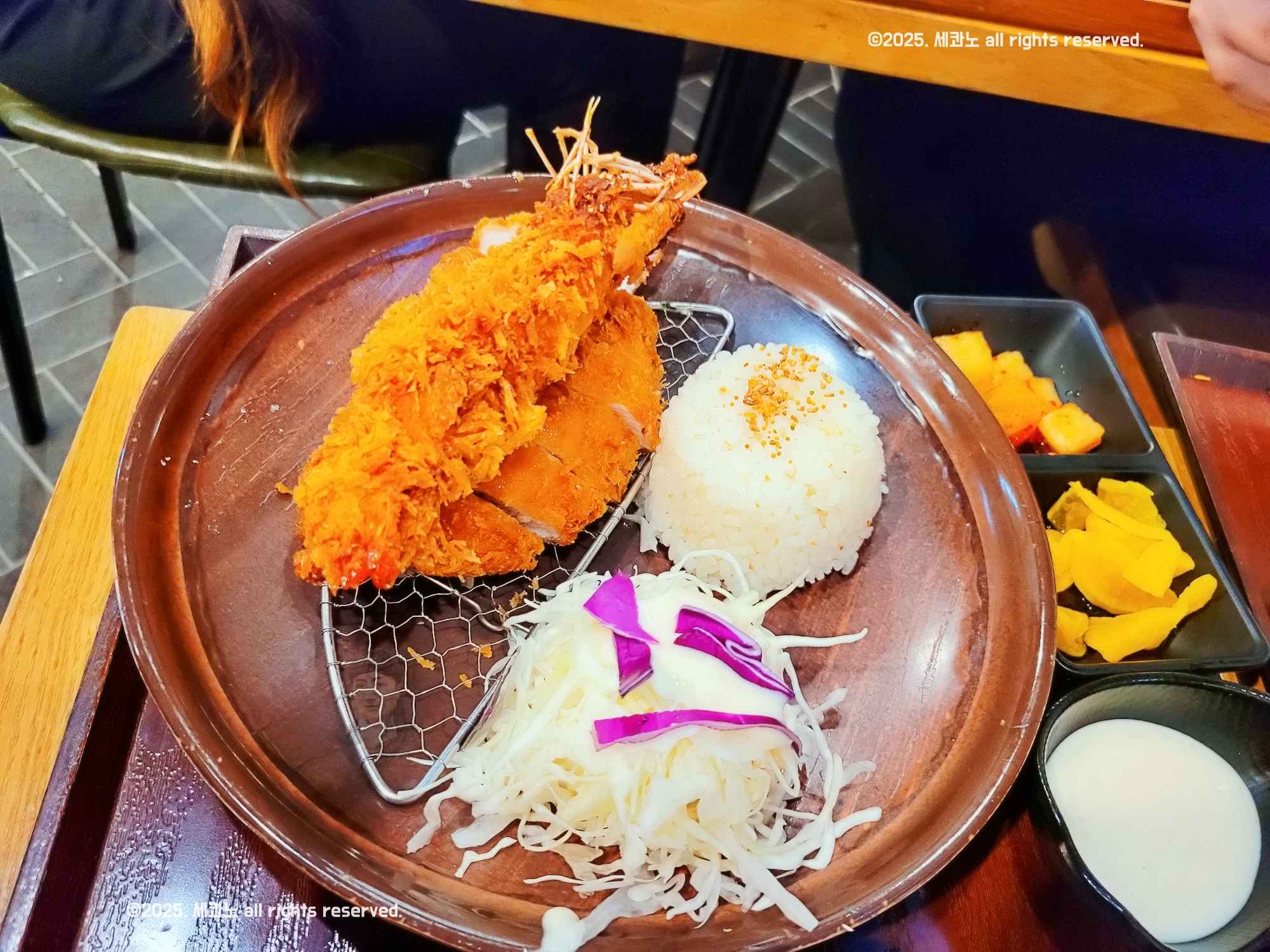 모듬카츠에는 돈카츠와 킹새우카츠가 각각 하나씩 들어있습니다.