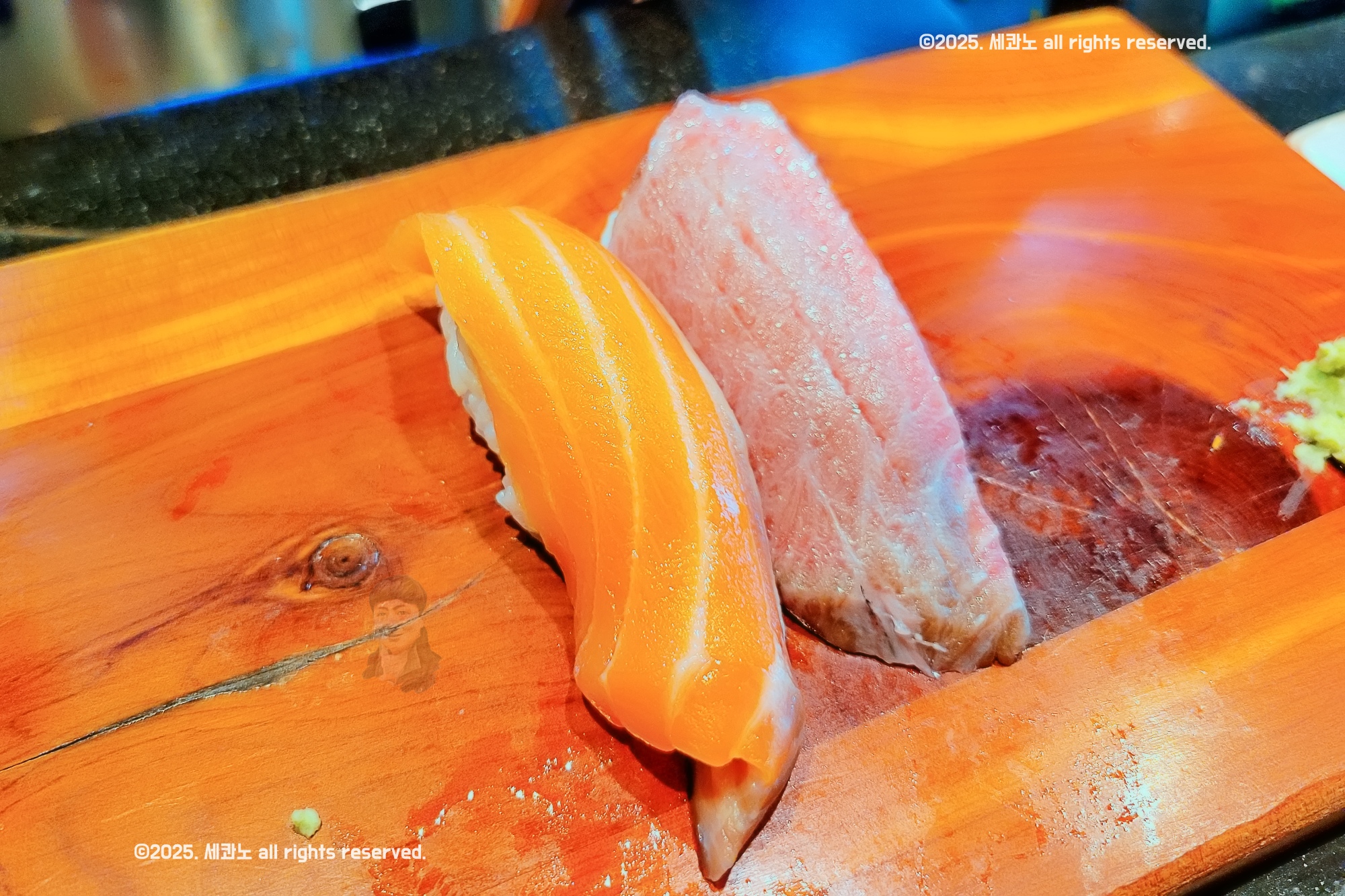 앞선 흰살생선들이 꽤 강한 맛이었다면, 중간에 나온 연어와 참치는 부드러운 식감으로 입안을 달래주는 역할을 했습니다. 아무래도 이 부분이 대중적인 인기를 끌 것 같더라고요.