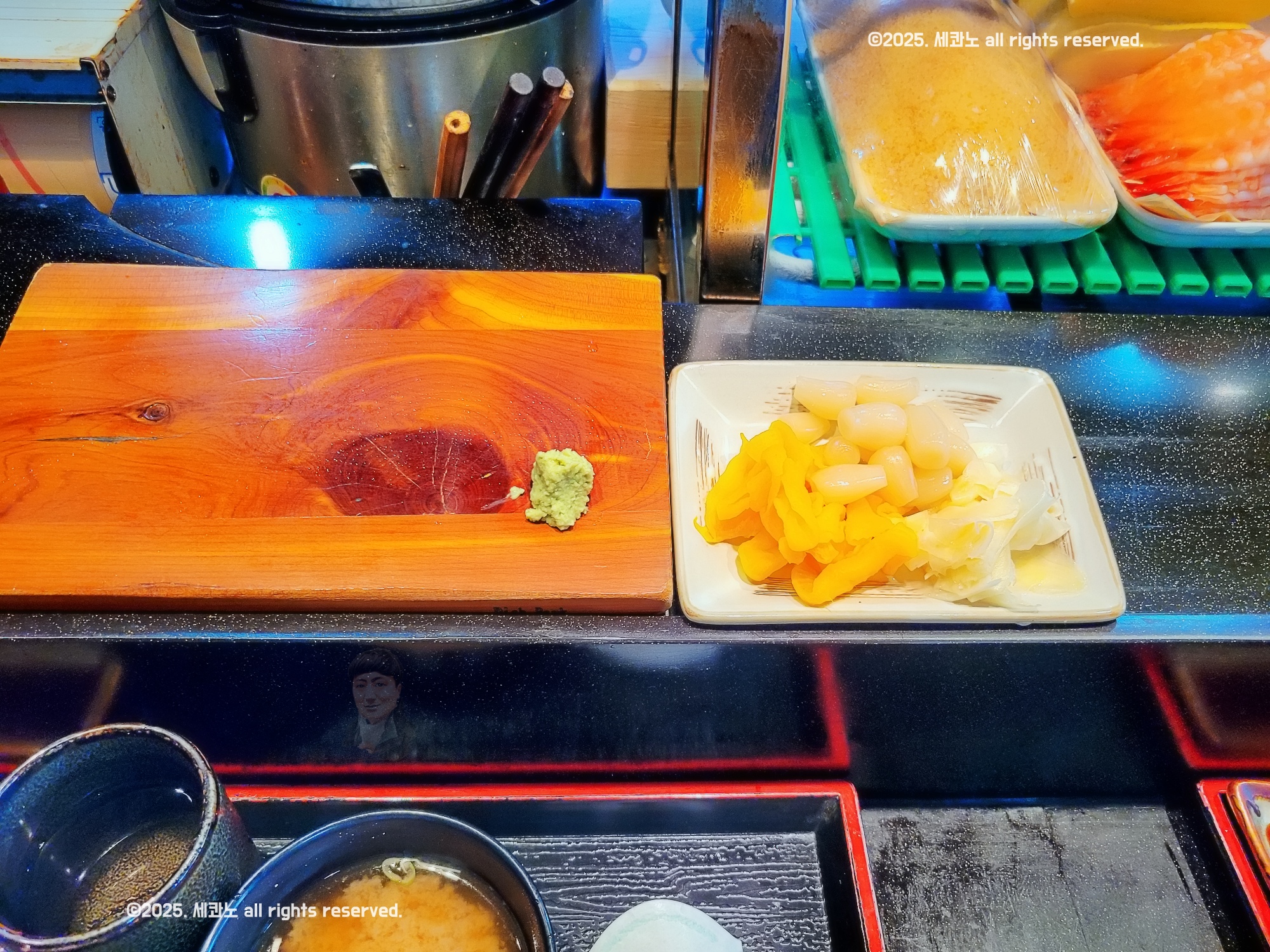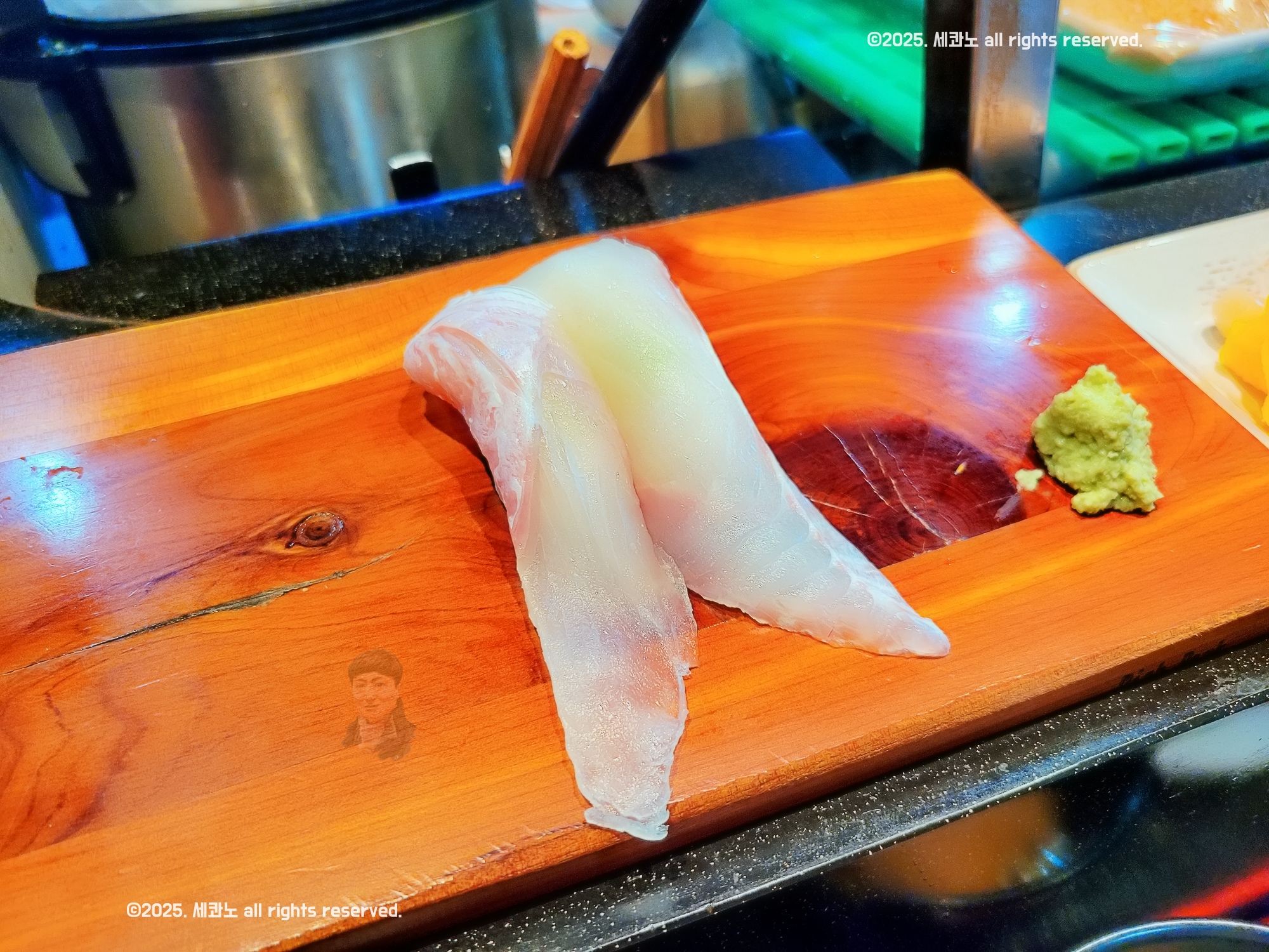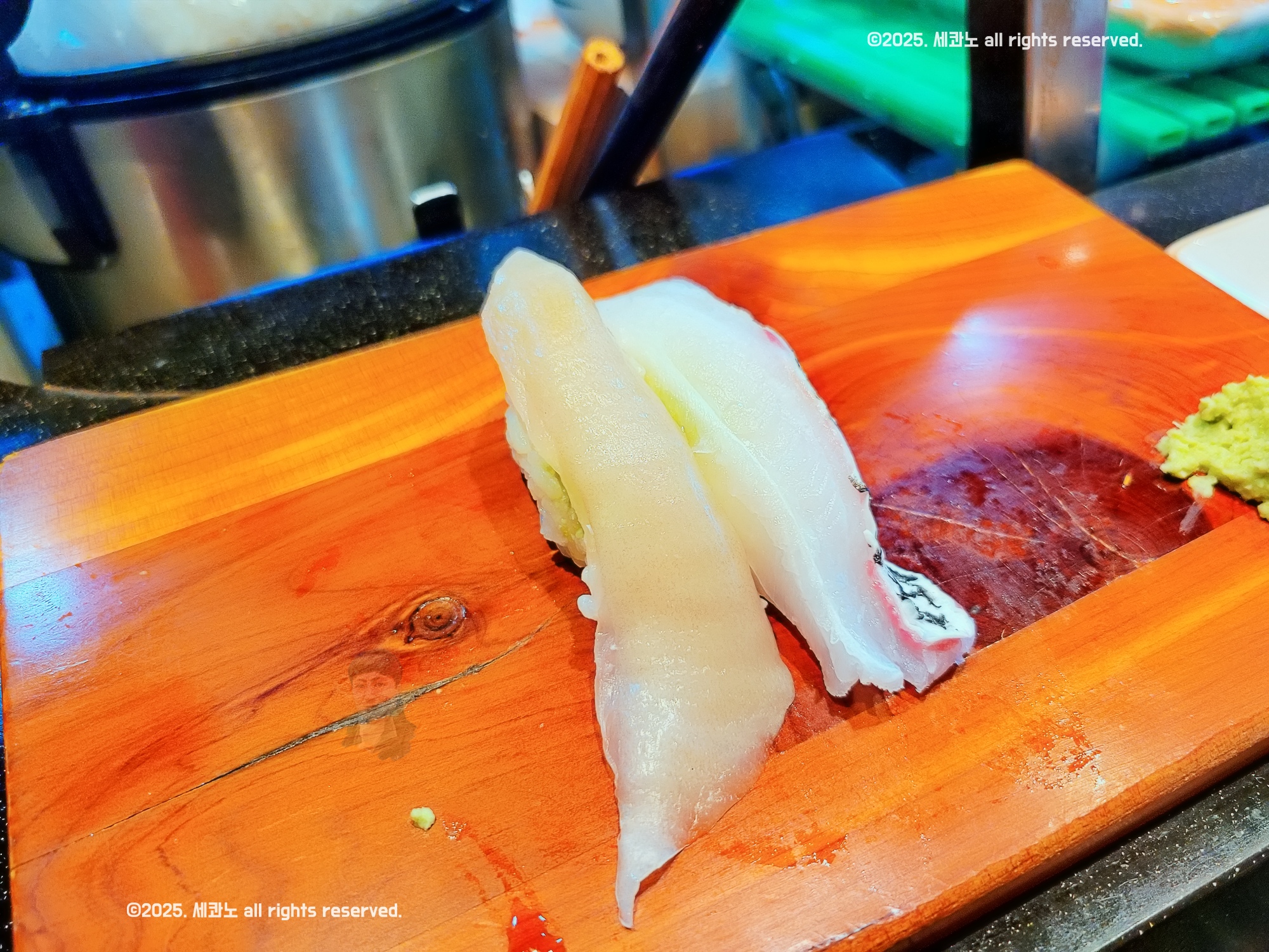 사장님의 손이 꽤 빨라서 한 피스를 다 먹기 전에 다음 초밥이 나오니, 적당한 속도로 드시는 것을 권해요.