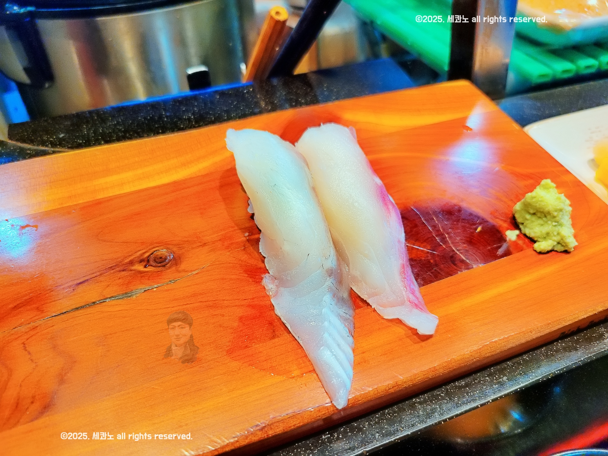 전체 12피스 중 무려 8개가 흰살생선으로 구성되어 있었습니다. 이른 시간에 방문해서 그런지 숙성보다는 활어에 가까운 신선함이 돋보였어요.
