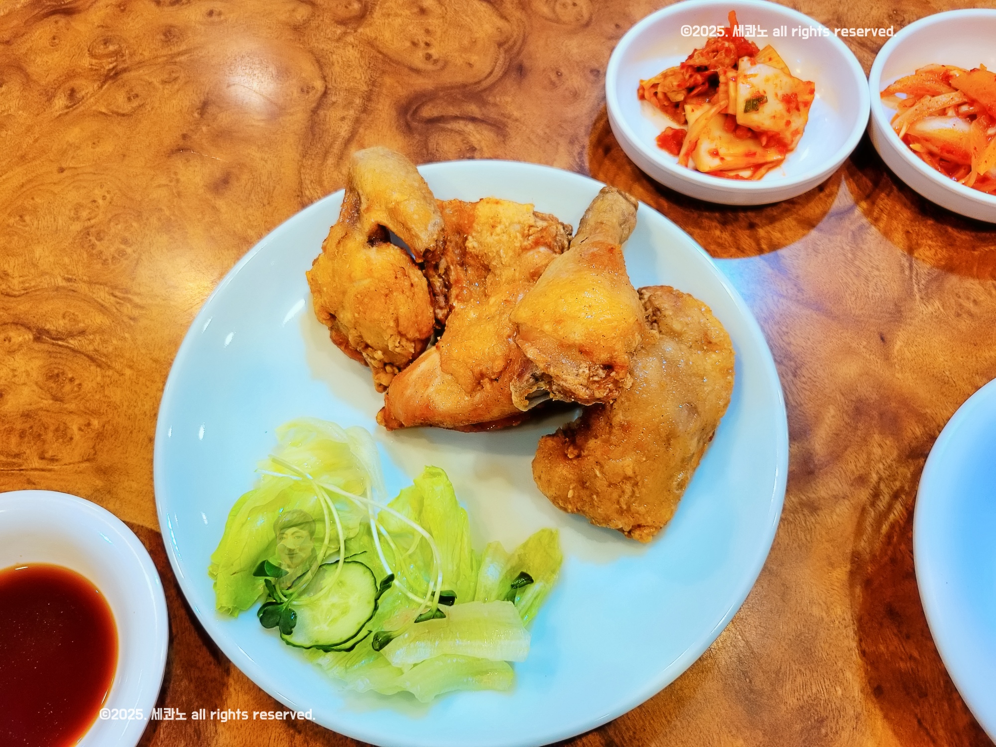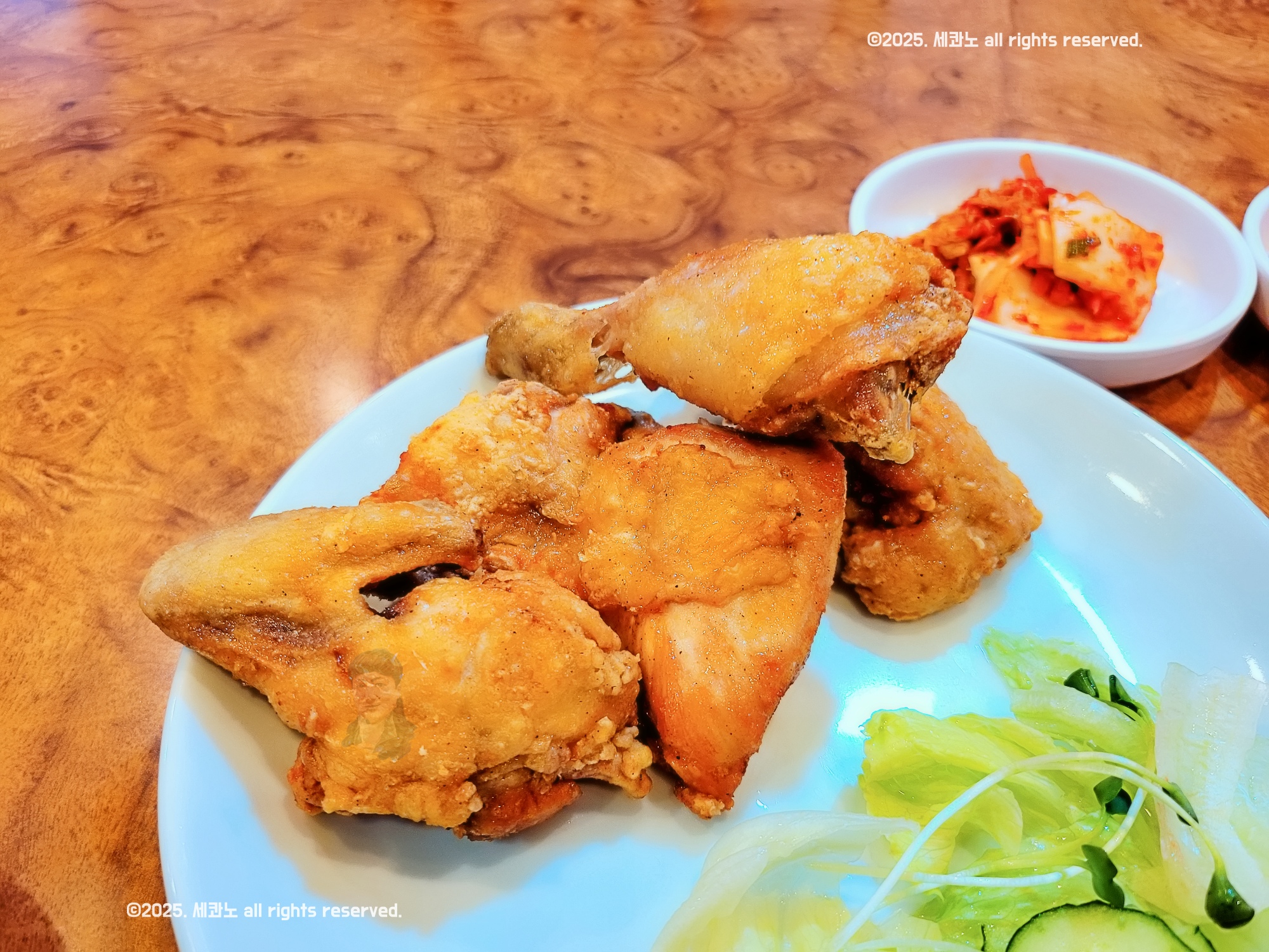 치킨은 요즘 흔한 후라이드보다는 옛날 통닭에 가까웠다.