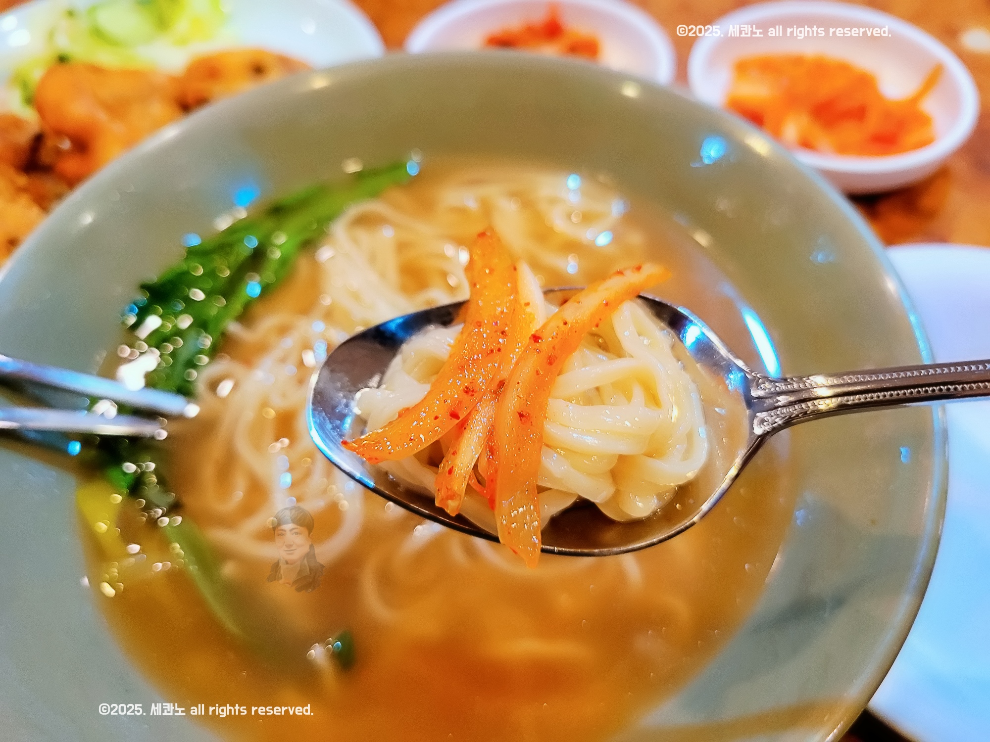 사전에 '제물국수'라는 방식으로 만든다고 들어서 걸쭉할 거라 생각했는데, 초반엔 상당히 깔끔한 편이었다.