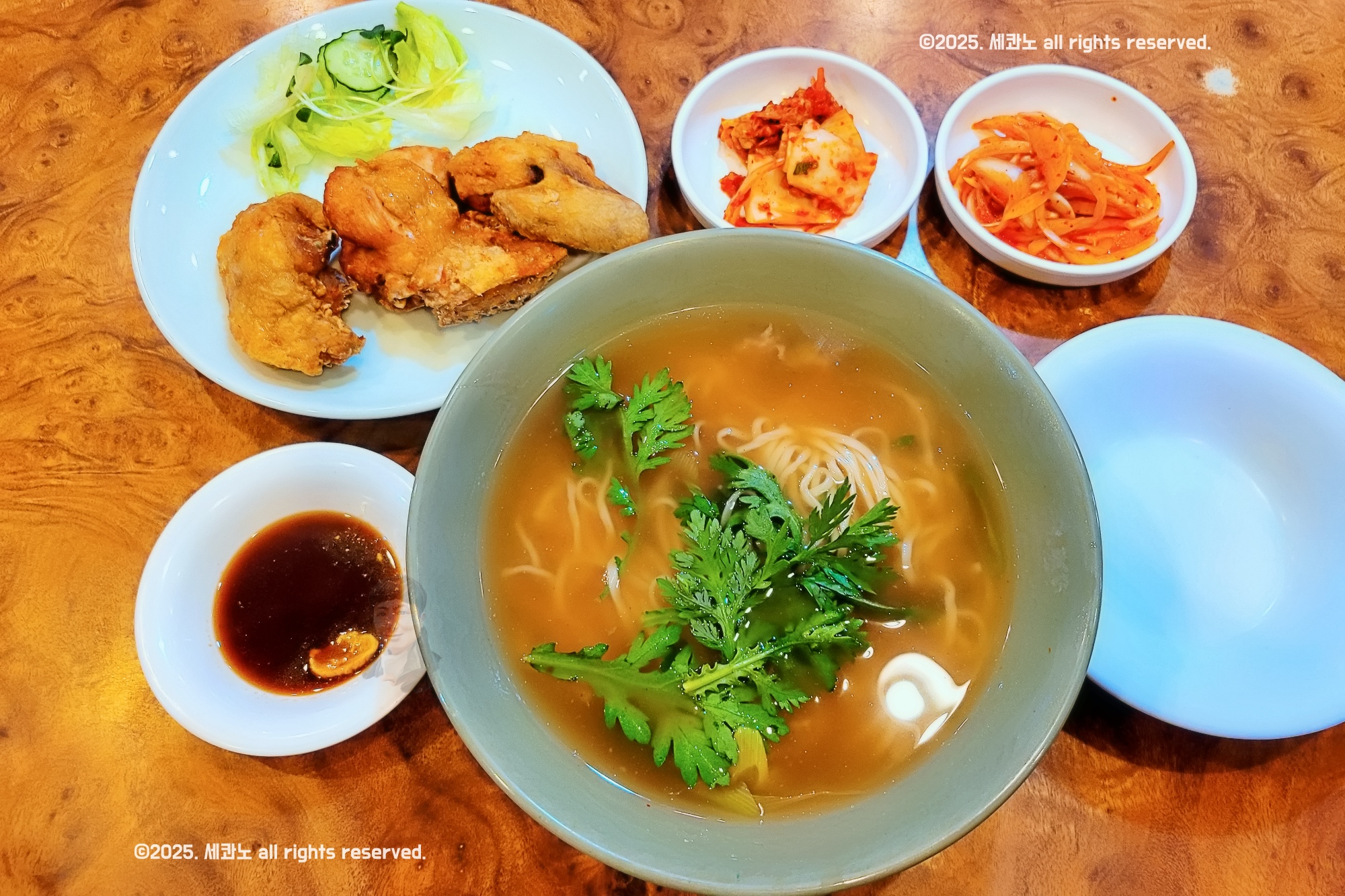 멸치와 다시마로 낸 육수가 제물국수임에도 생각보다 깔끔했고, 계속 따뜻함을 유지하는 점도 좋았다.