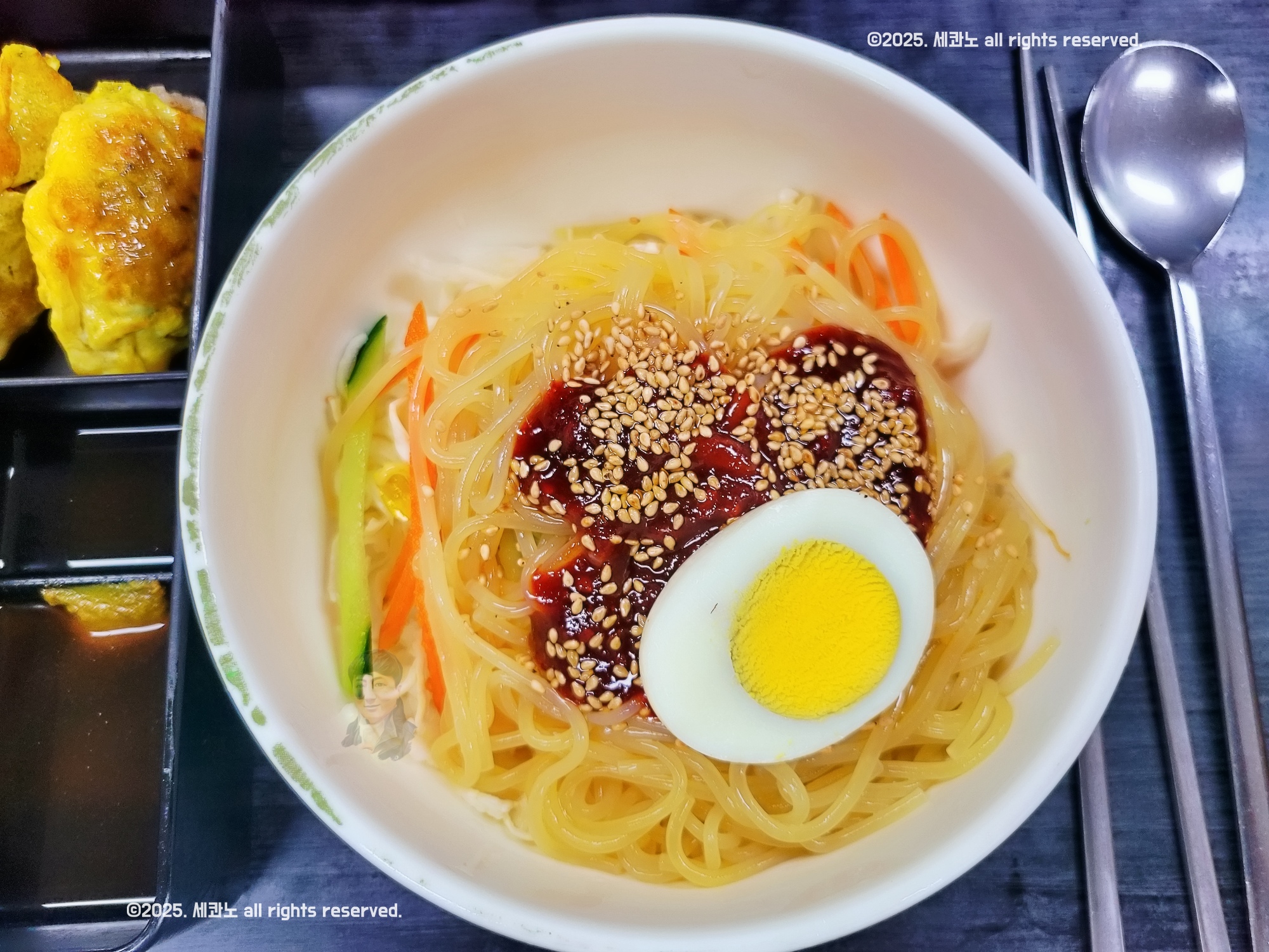 쫄깃한 쫄면, 잘 비벼서 먹었습니다.