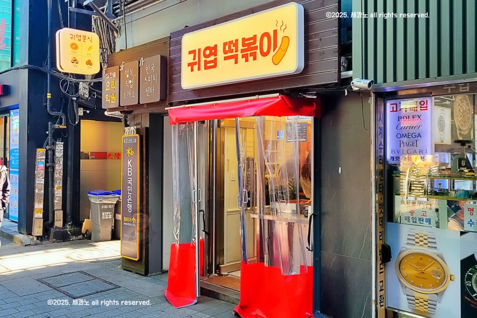 간판에는 '귀엽분식'과 '종로본점'이라는 이름이 함께 적혀있습니다.