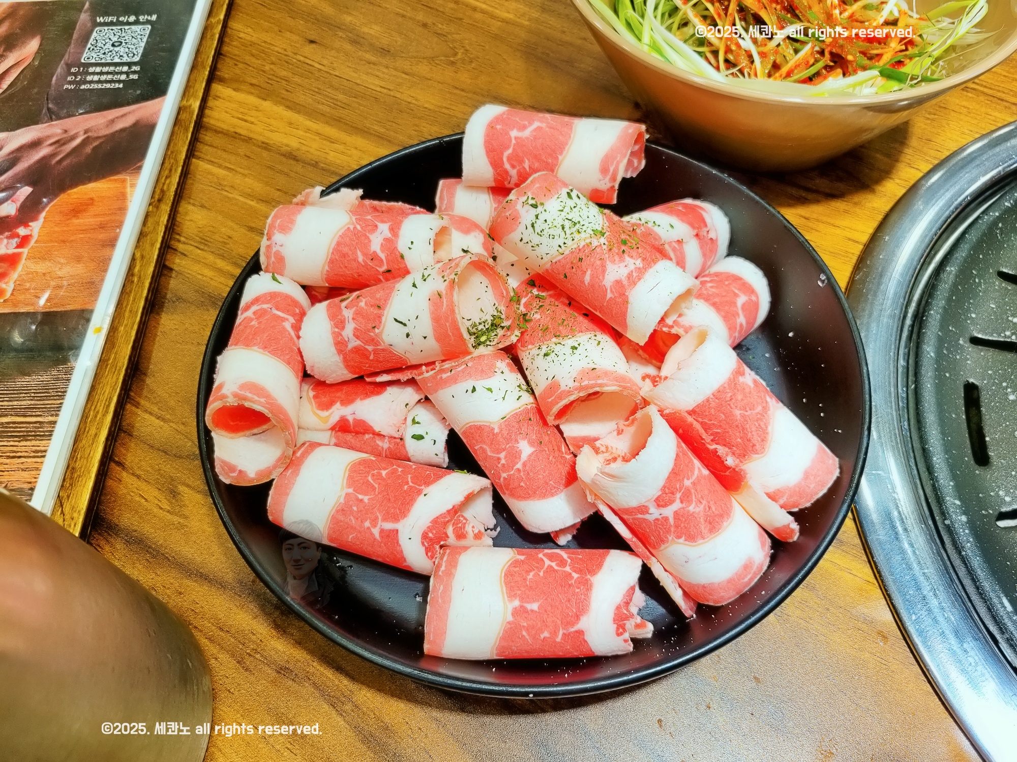 차돌박이를 구워서 그걸로 삼겹살을 싸 먹는 것도 별미였습니다.