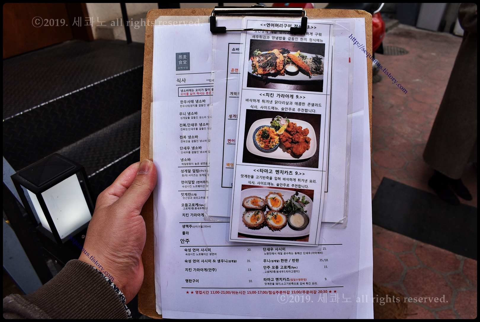 바깥에서 메뉴판을 먼저 받아서 한 번 살펴보았다