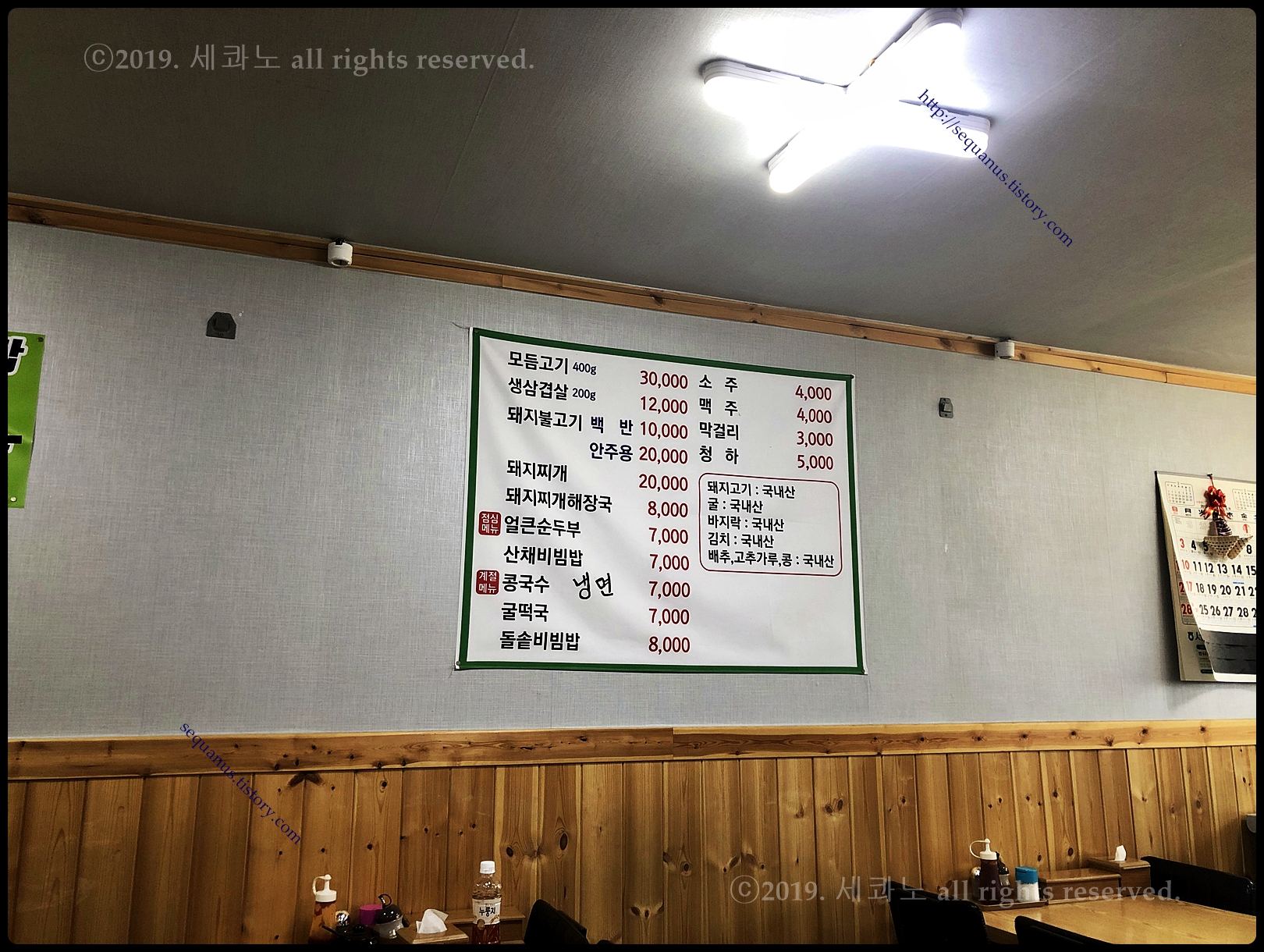점심 때 갔더니 돼지고기 들어간 메뉴가