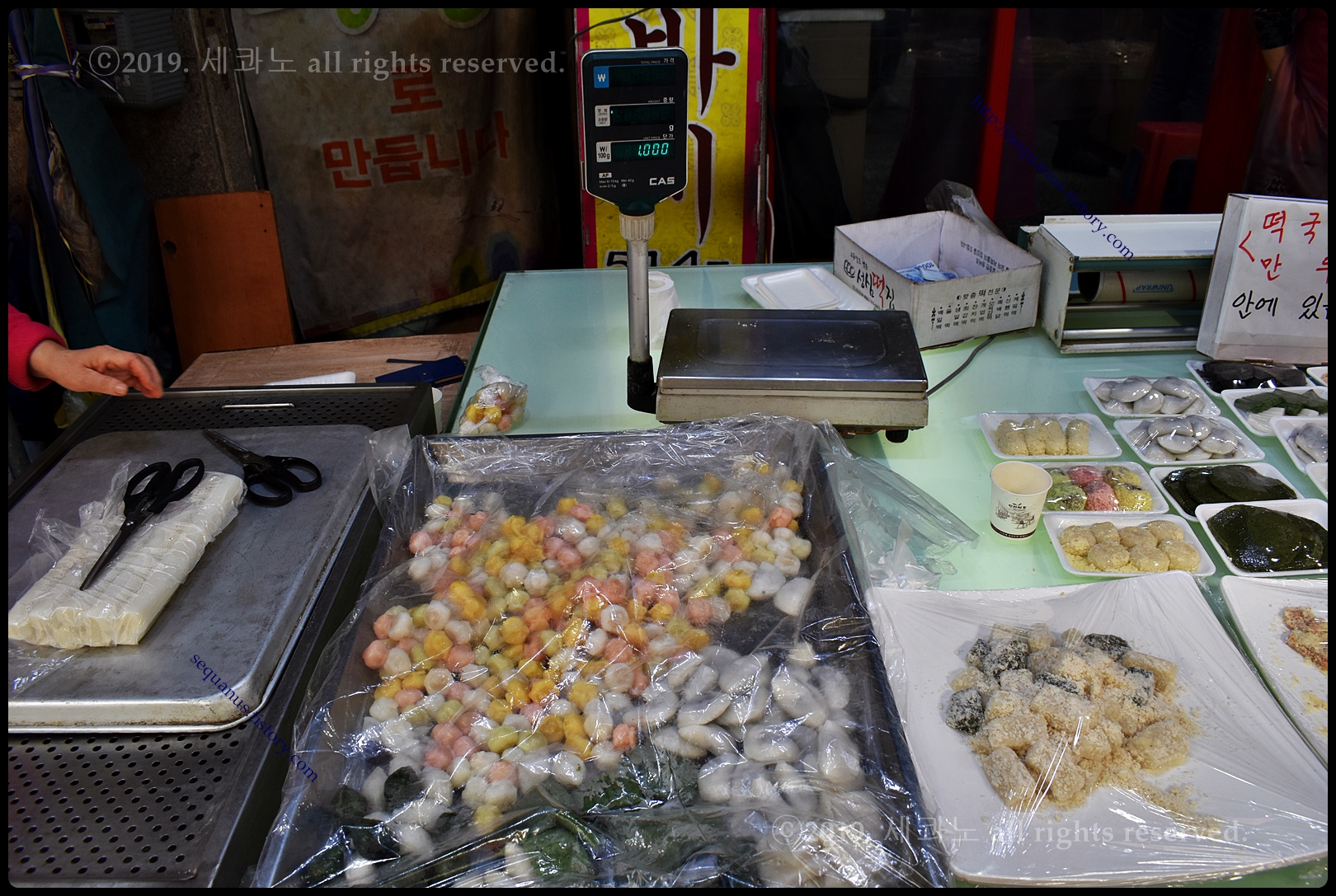 가게가 빽빽이 줄을 선 이곳에 독특한 인절미로