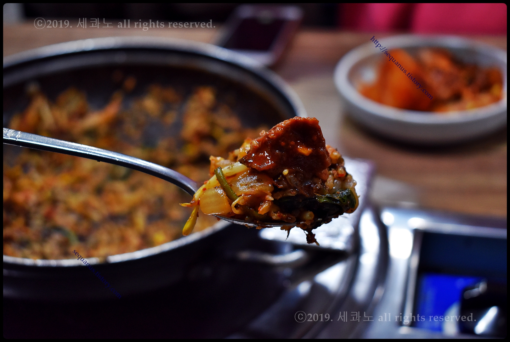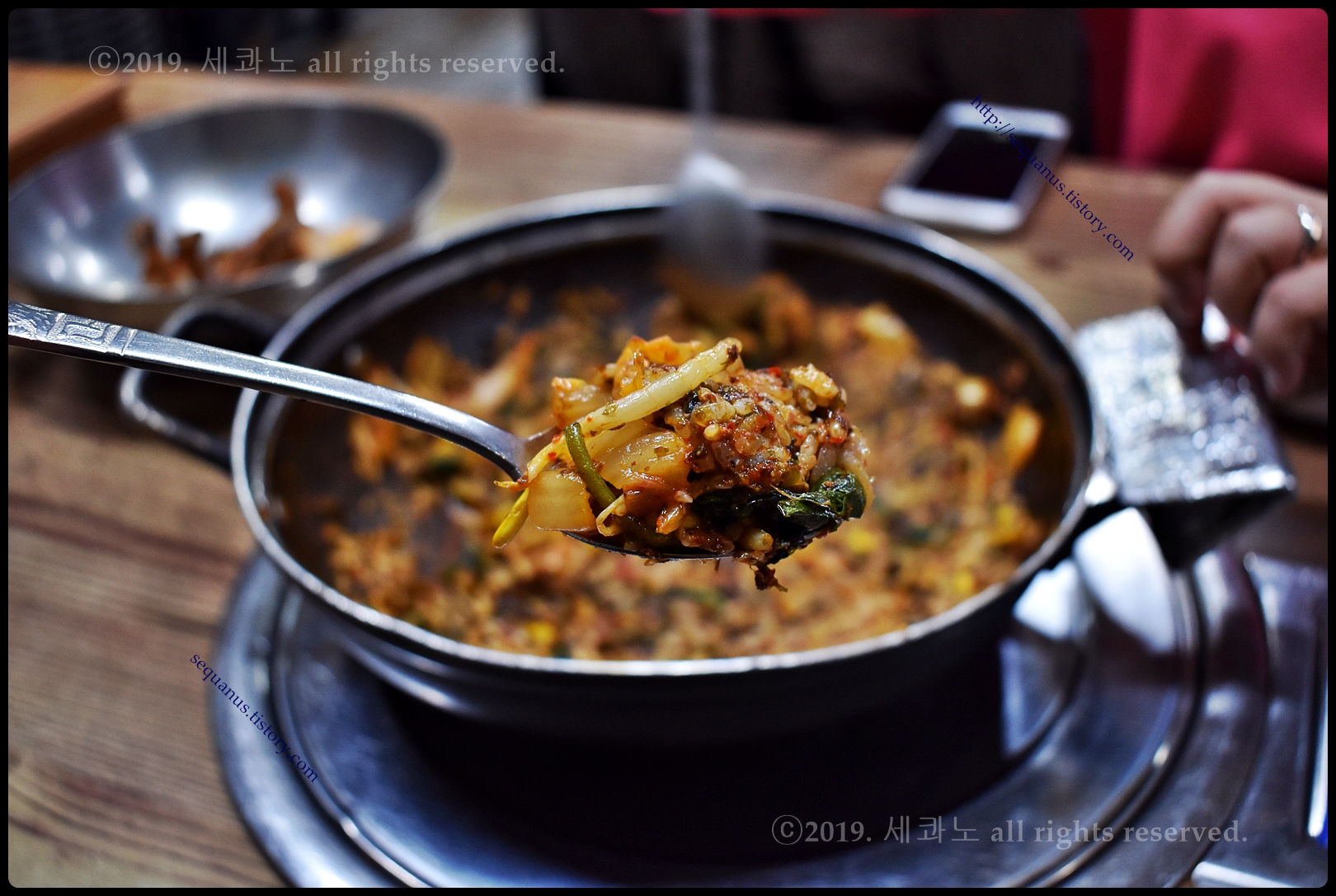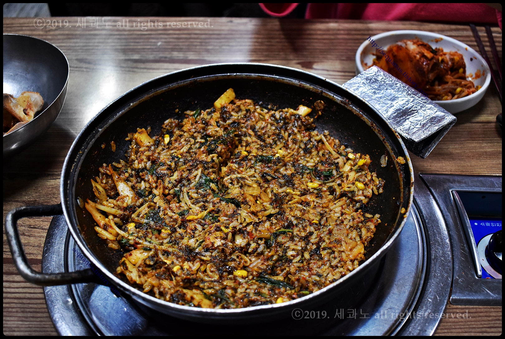 먹다 보니 둘이서 다 먹고 밥까지 볶아 먹었다.