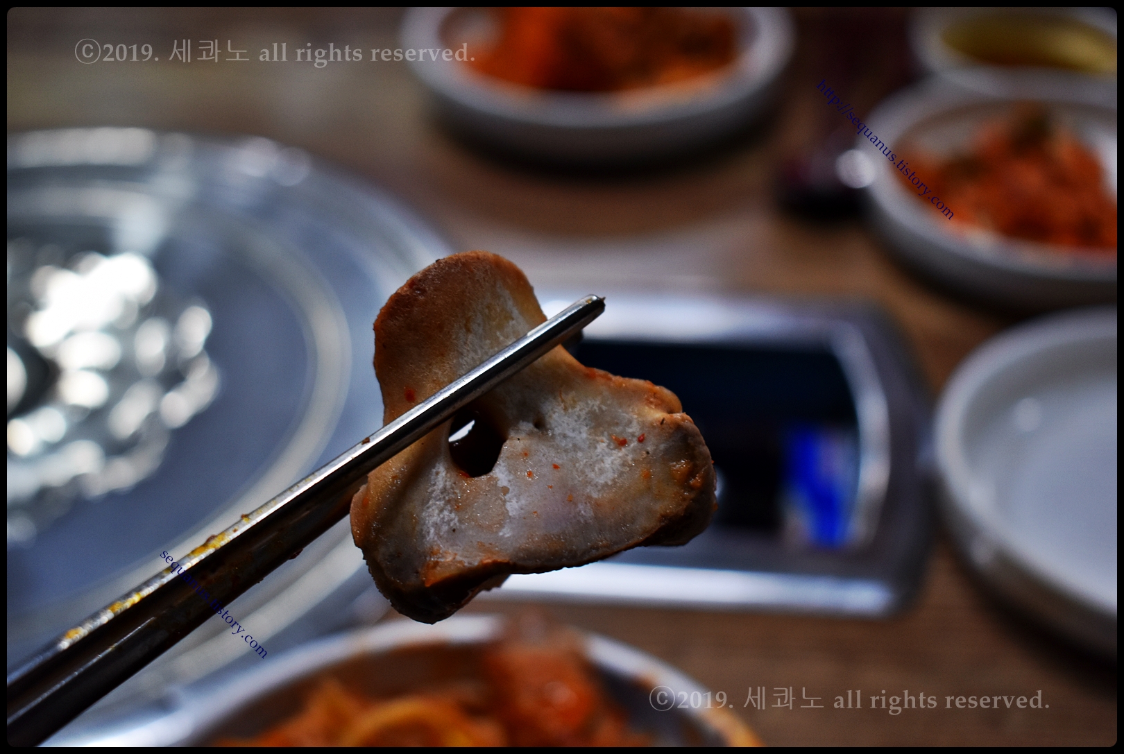 아무래도 돼지 잡내를 감춰야 하다 보니 양념이 없지는 않은데