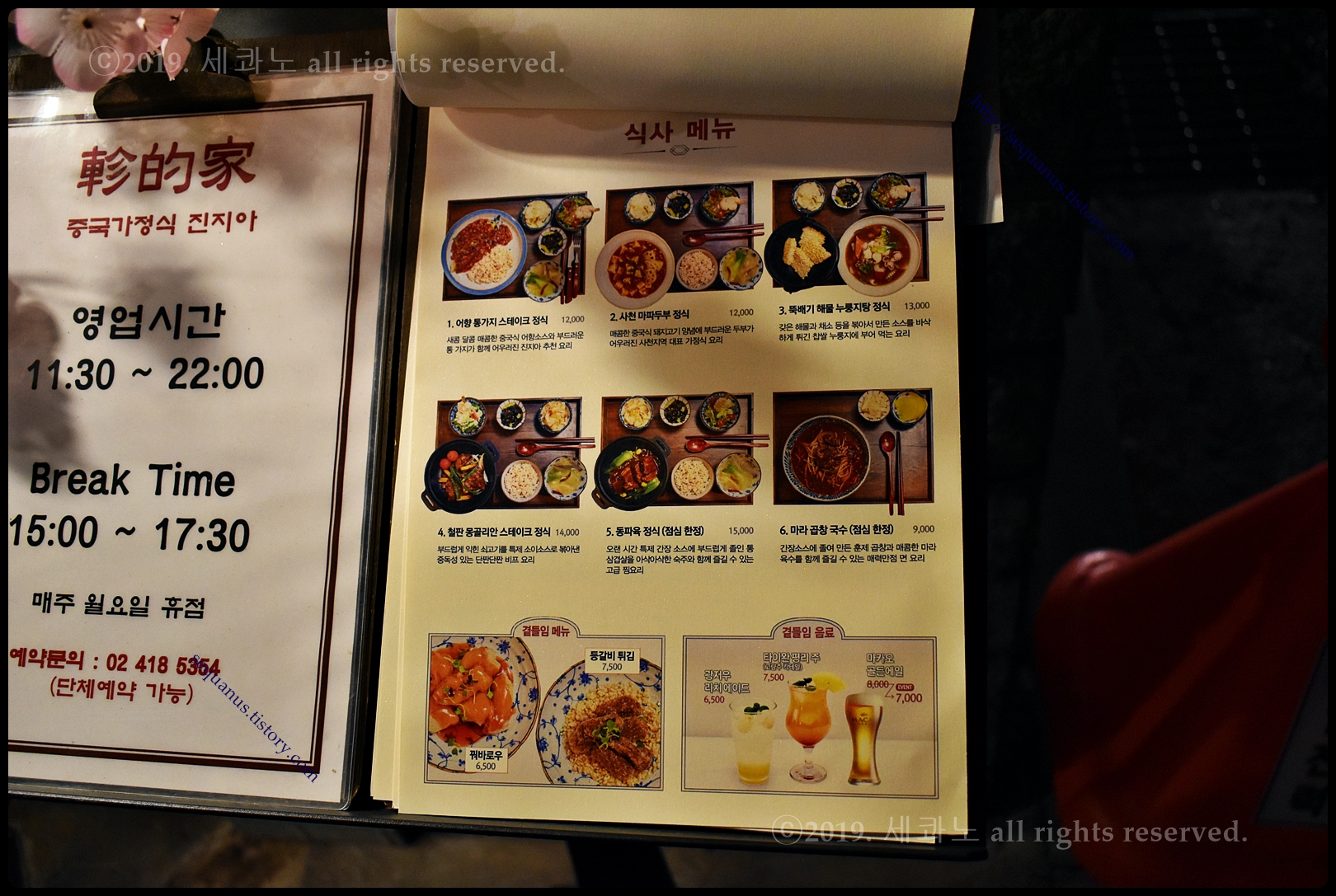 3인 이상의 단체의 한 상 요리(코스 요리)만 예약 가능하다.