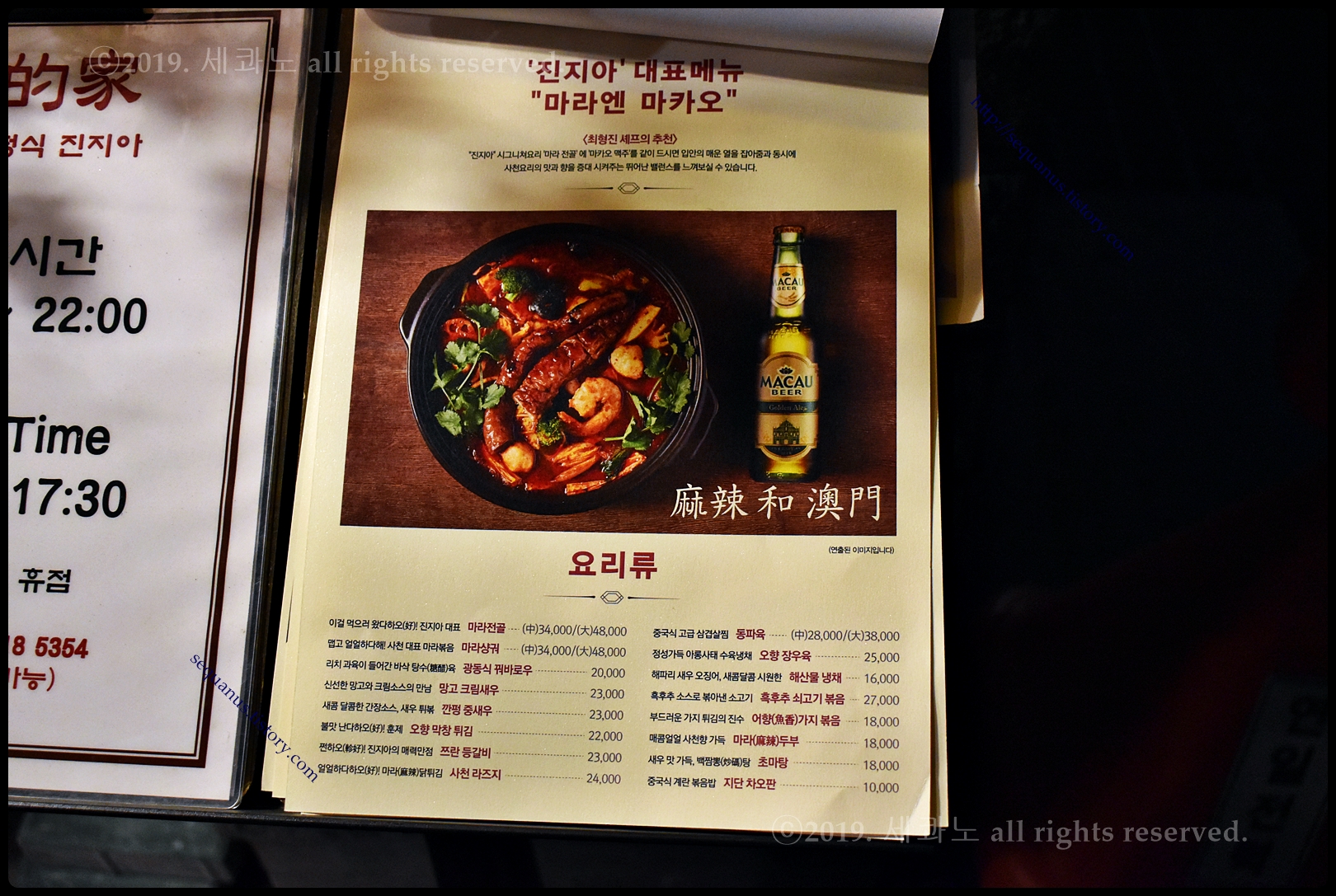 마카오가 매우 잘 어울린다고 하니 한 병 시켜주고